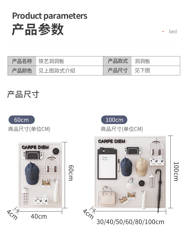 • 100×40cm-흰색에는 후크 10개가 포함되어 있습니다.