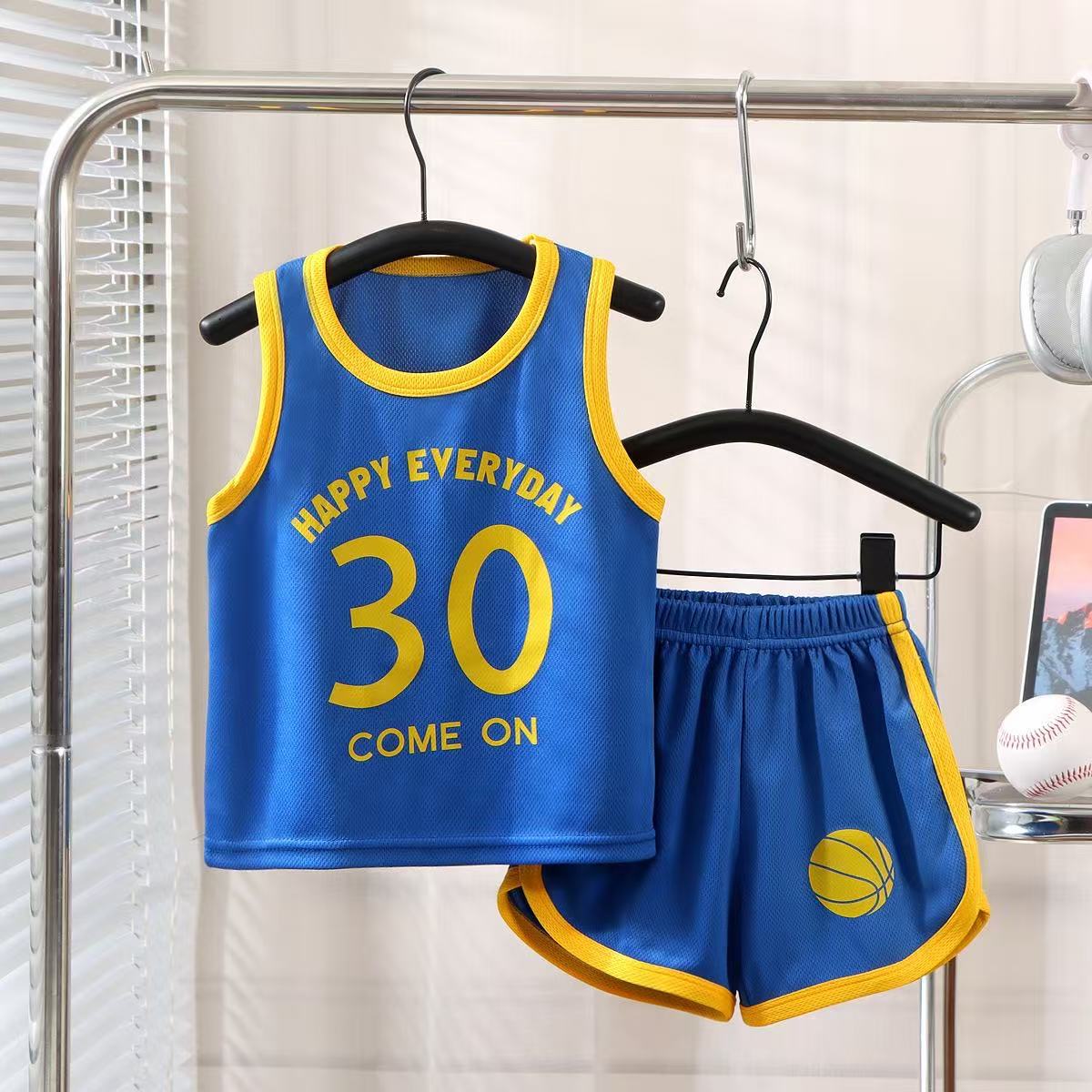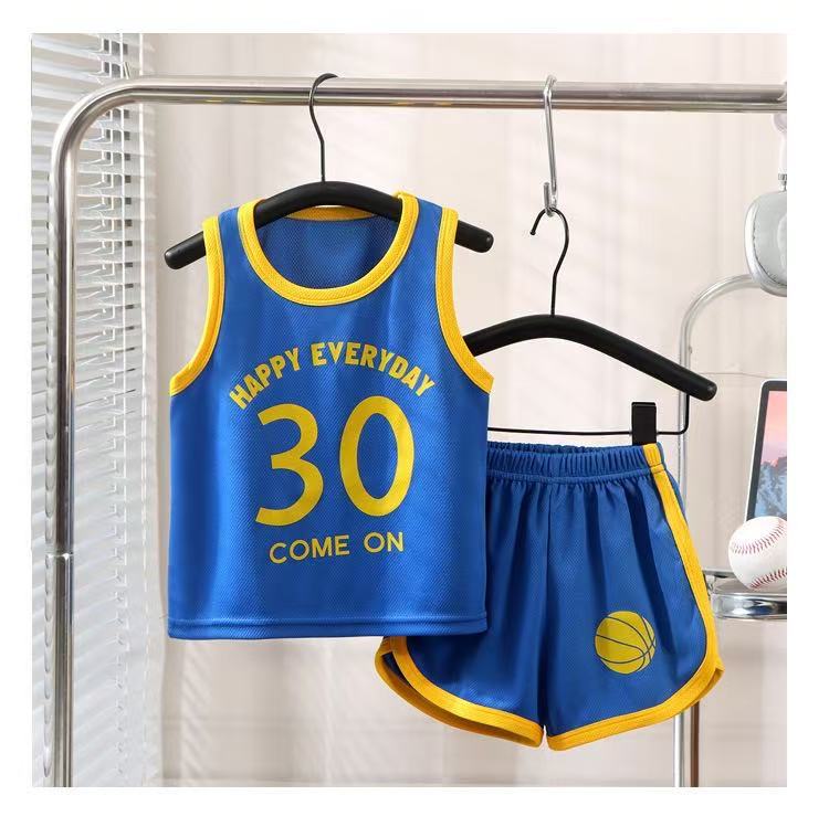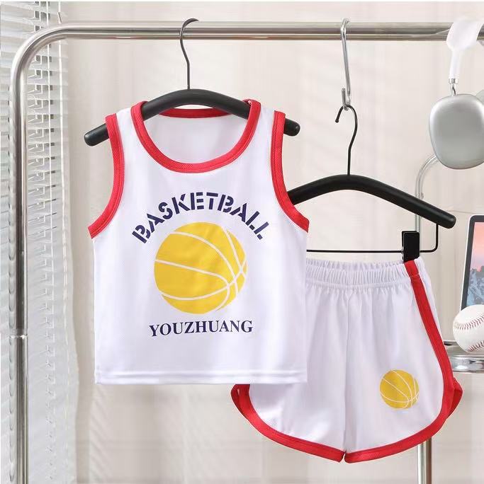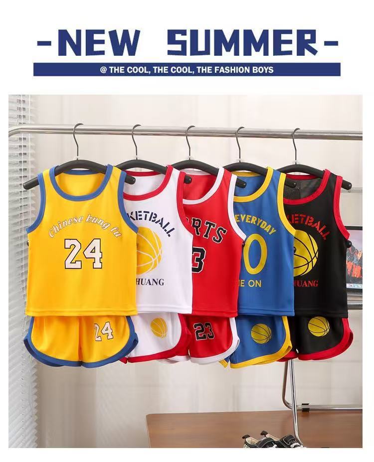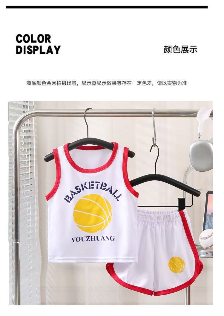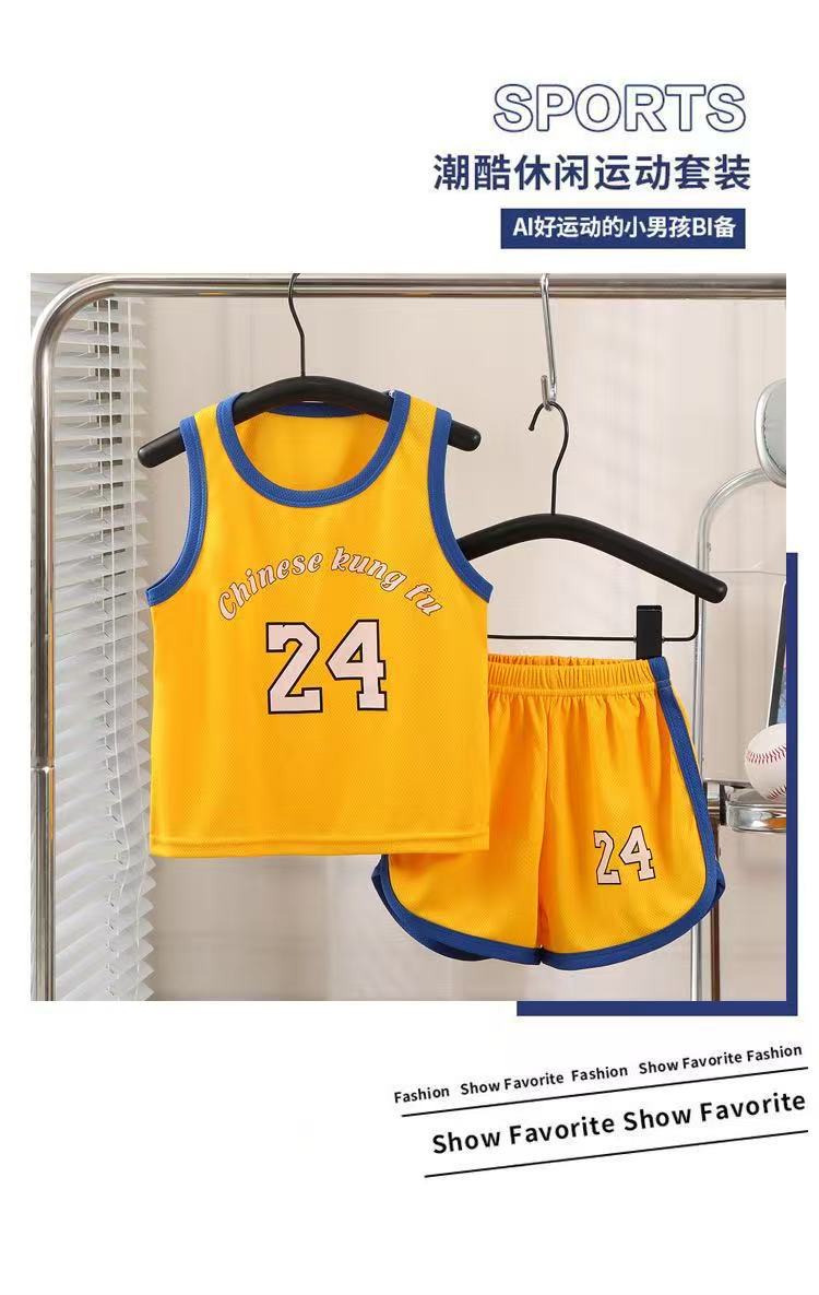 새로운 어린이 스포츠 세트 소년 소녀 여름 메쉬 조끼 반바지 세트 여름 저지 투피스 세트스토어 가기