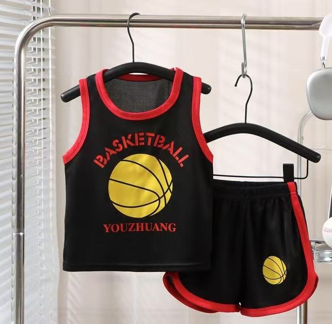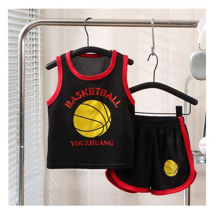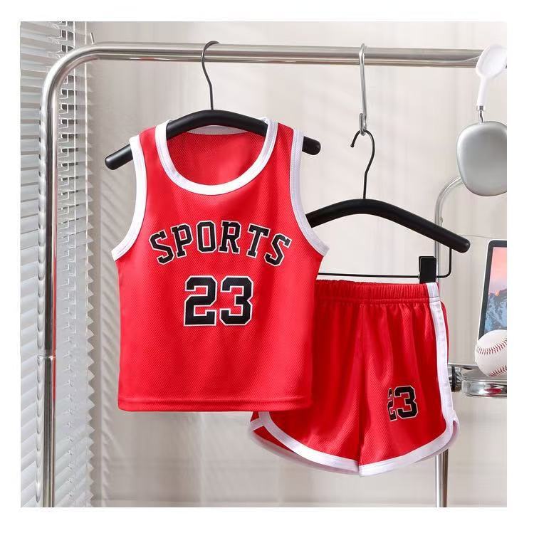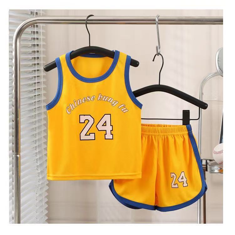 새로운 어린이 스포츠 세트 소년 소녀 여름 메쉬 조끼 반바지 세트 여름 저지 투피스 세트