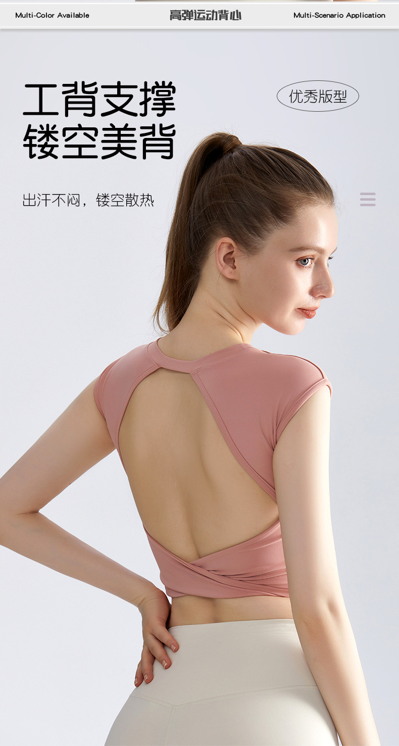 여름 신상 여성용 요가탑 가슴 패드 내장 스포츠 브라, 등이 예쁜 디자인의 충격 방지 요가탑스토어 가기