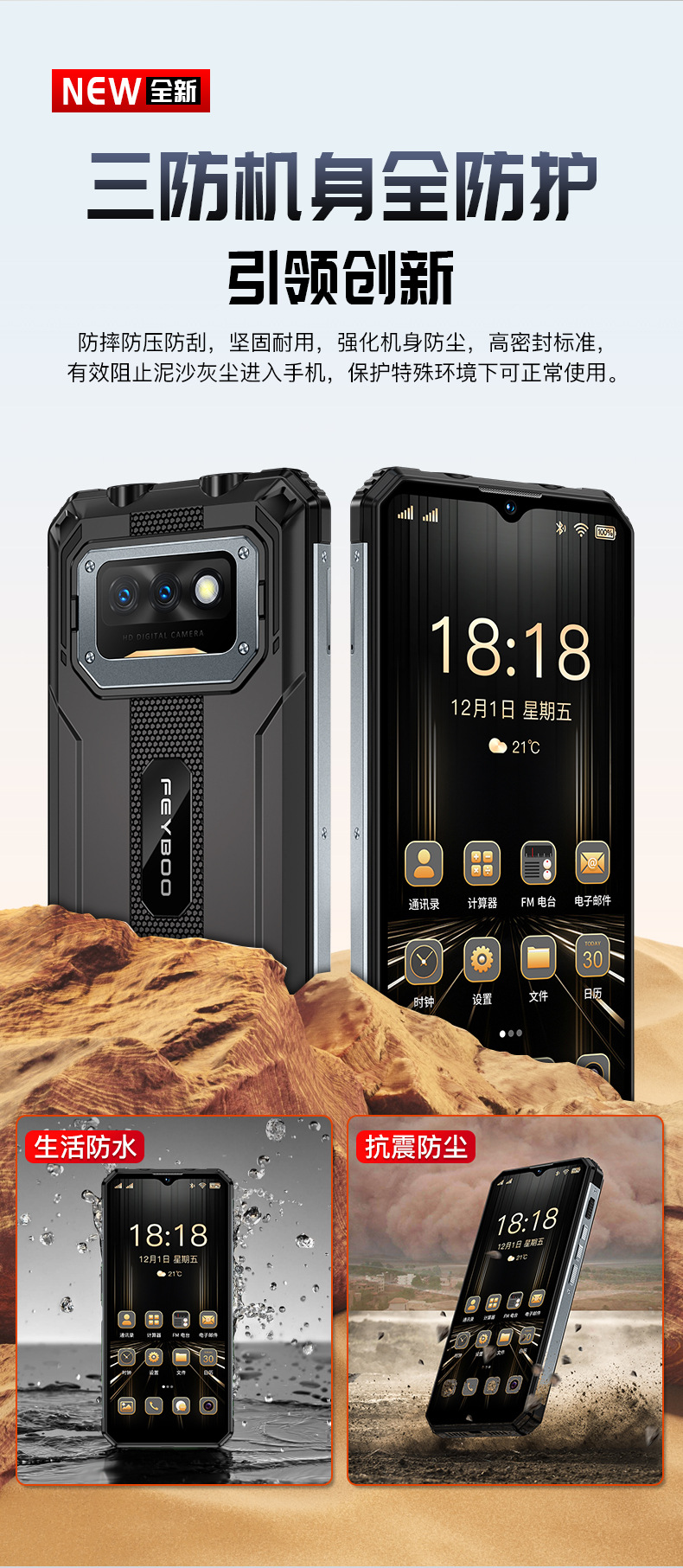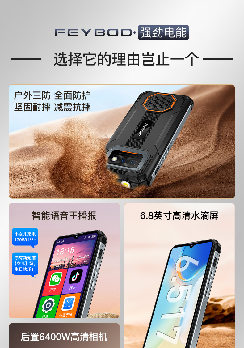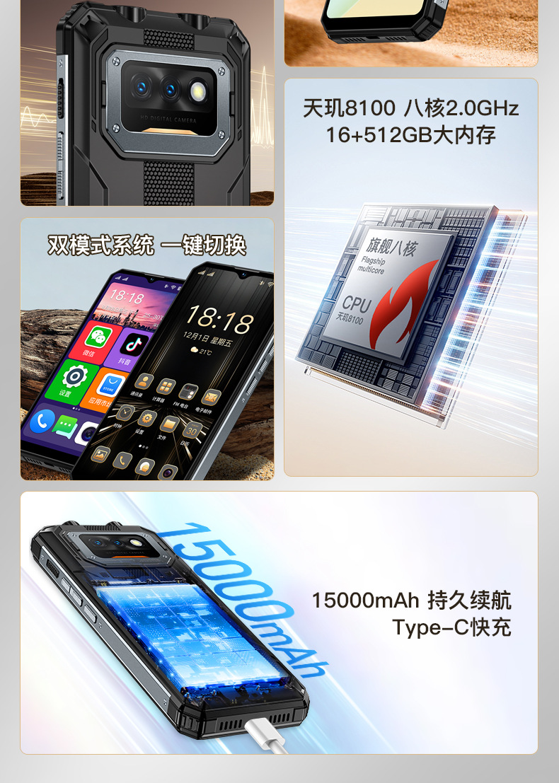 대형 배터리, 긴 대기 시간, 야외용 3중 방지 라이더 테이크아웃, 낙하 방지, 전체 네트워크 통신, 순수 버전의 안드로이드 스마트폰