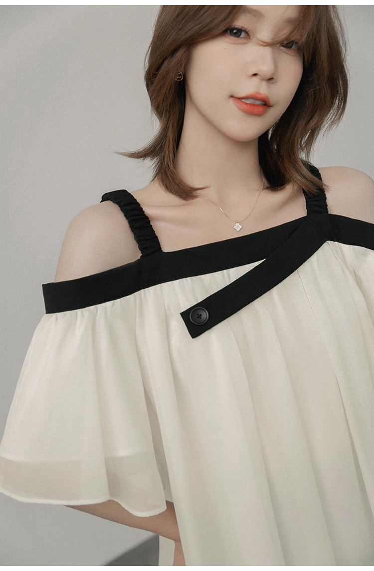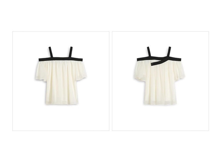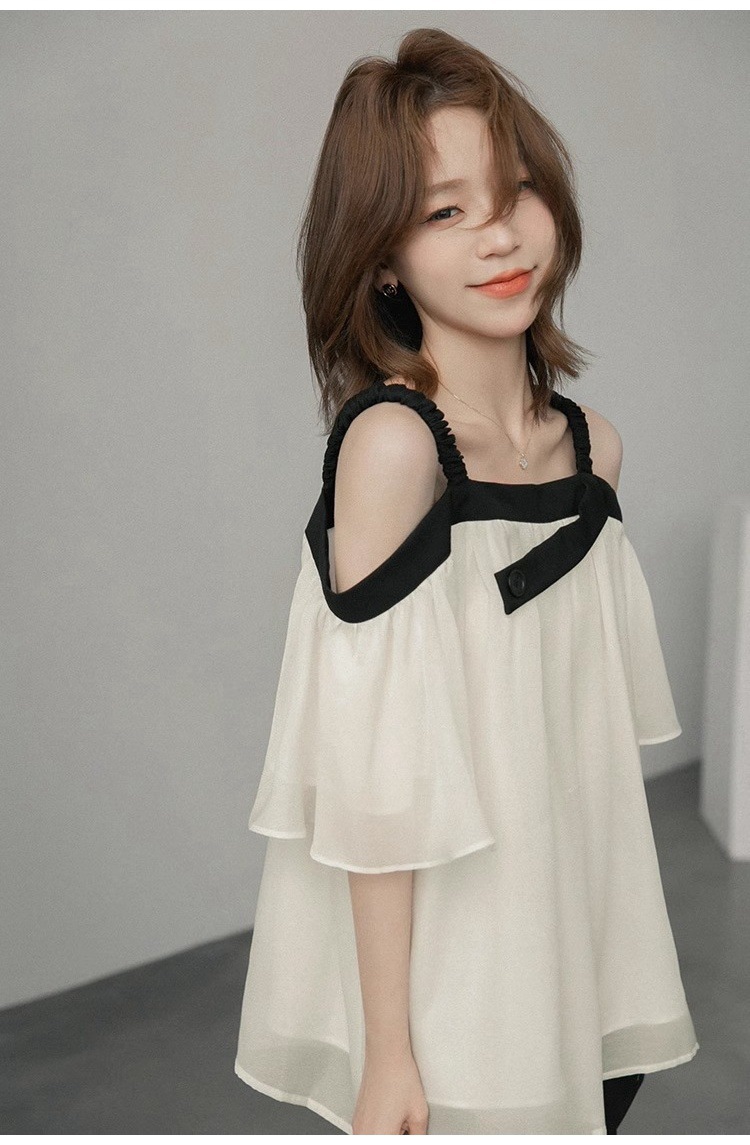 통통녀 플러스 사이즈 150.00kg 달콤한 스트랩리스 콘트라스트 쉬폰 셔츠 여자의 여름 느슨한 우아한 반팔 작은 셔츠 톱 2