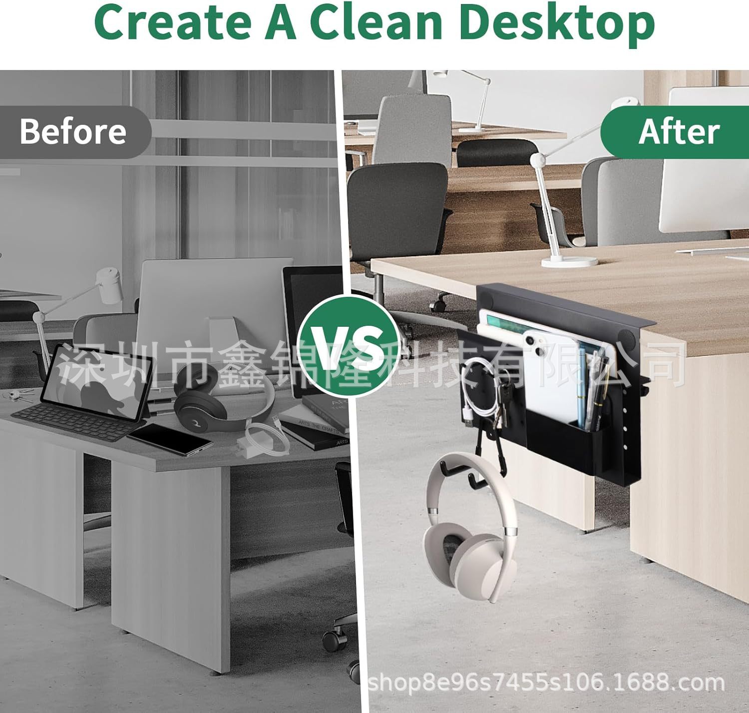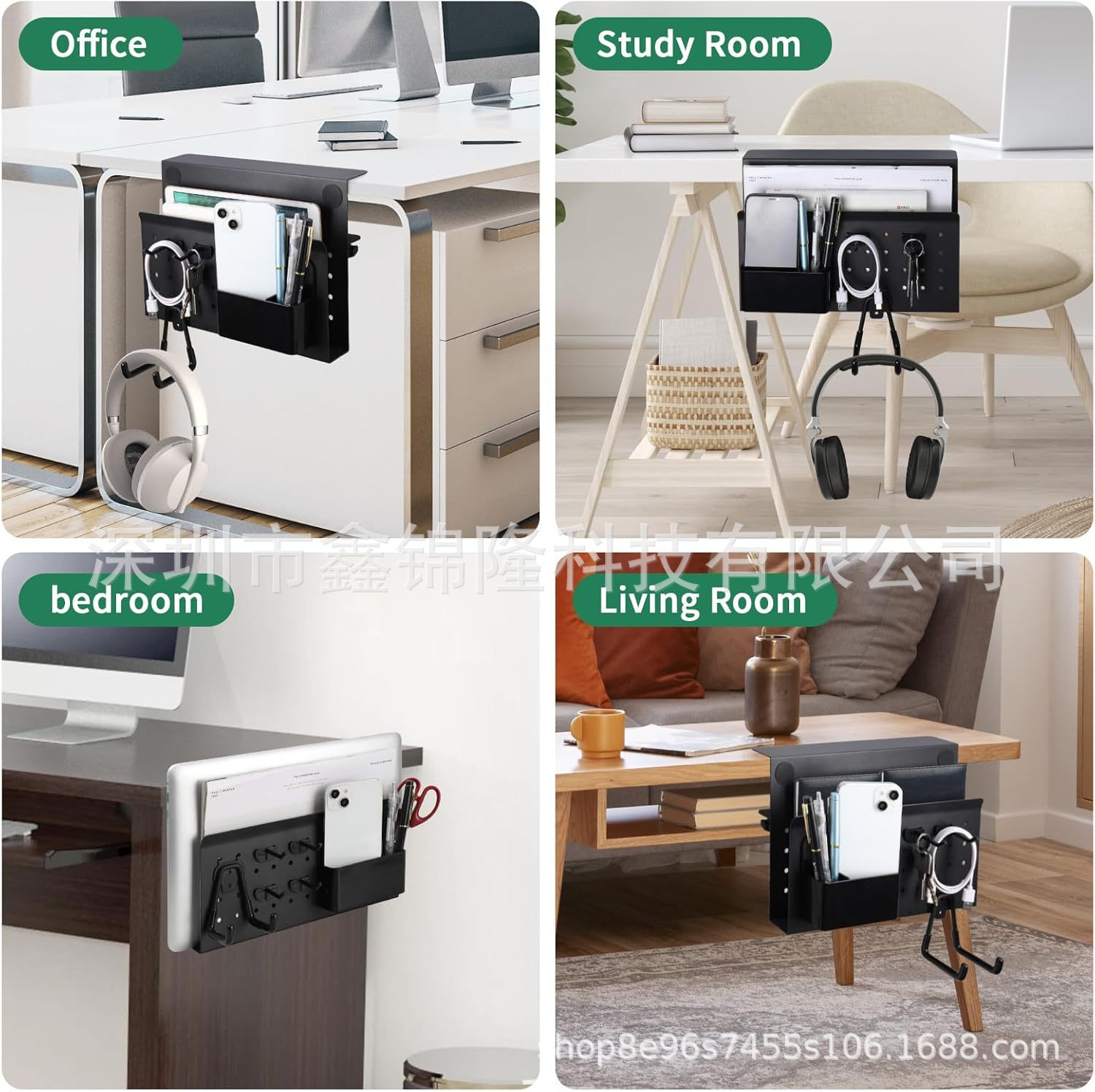 책상 측면 보관, 헤드폰 후크가있는 책상 아래 노트북 스탠드, 드릴링되지 않은 노트북