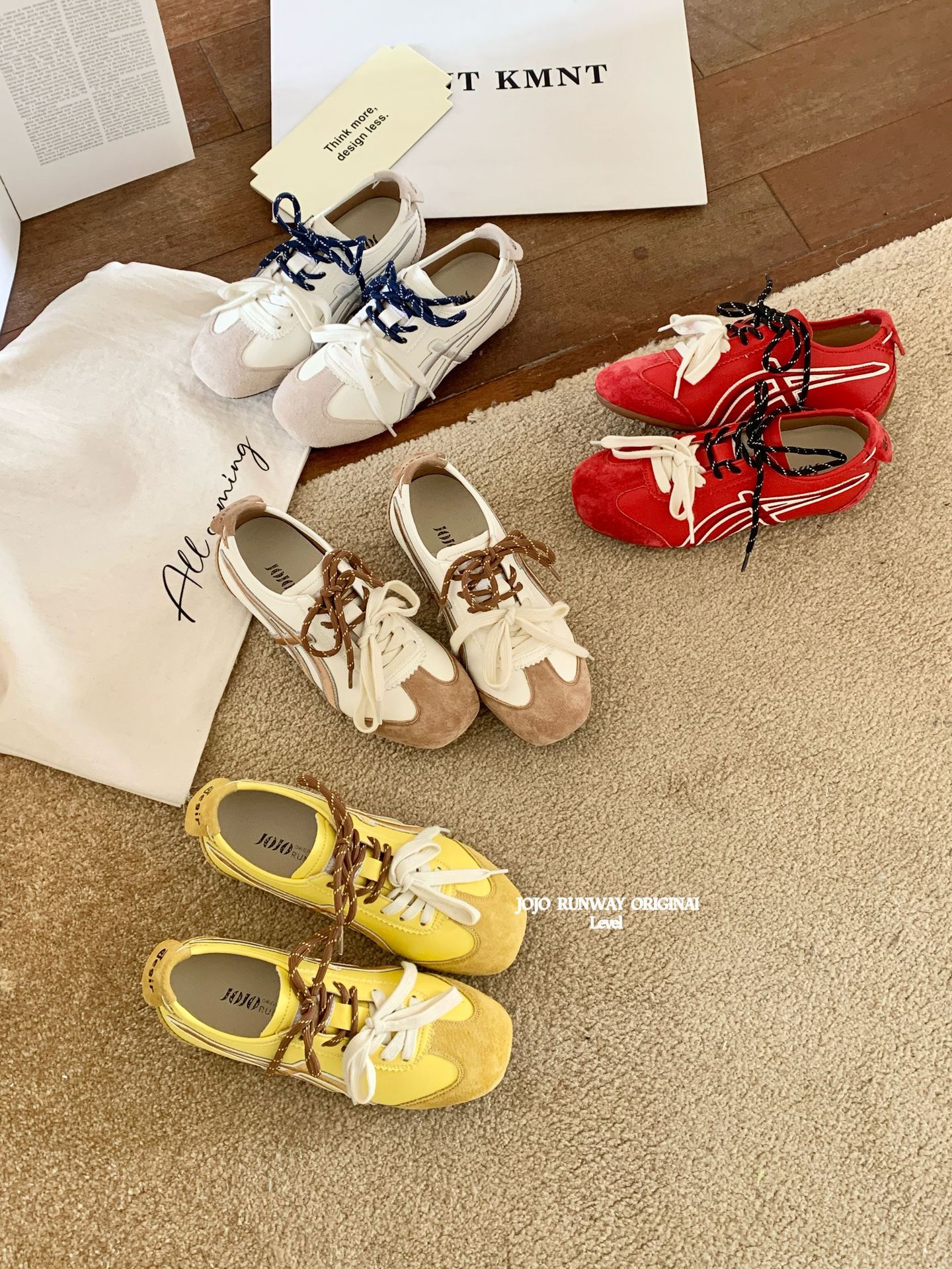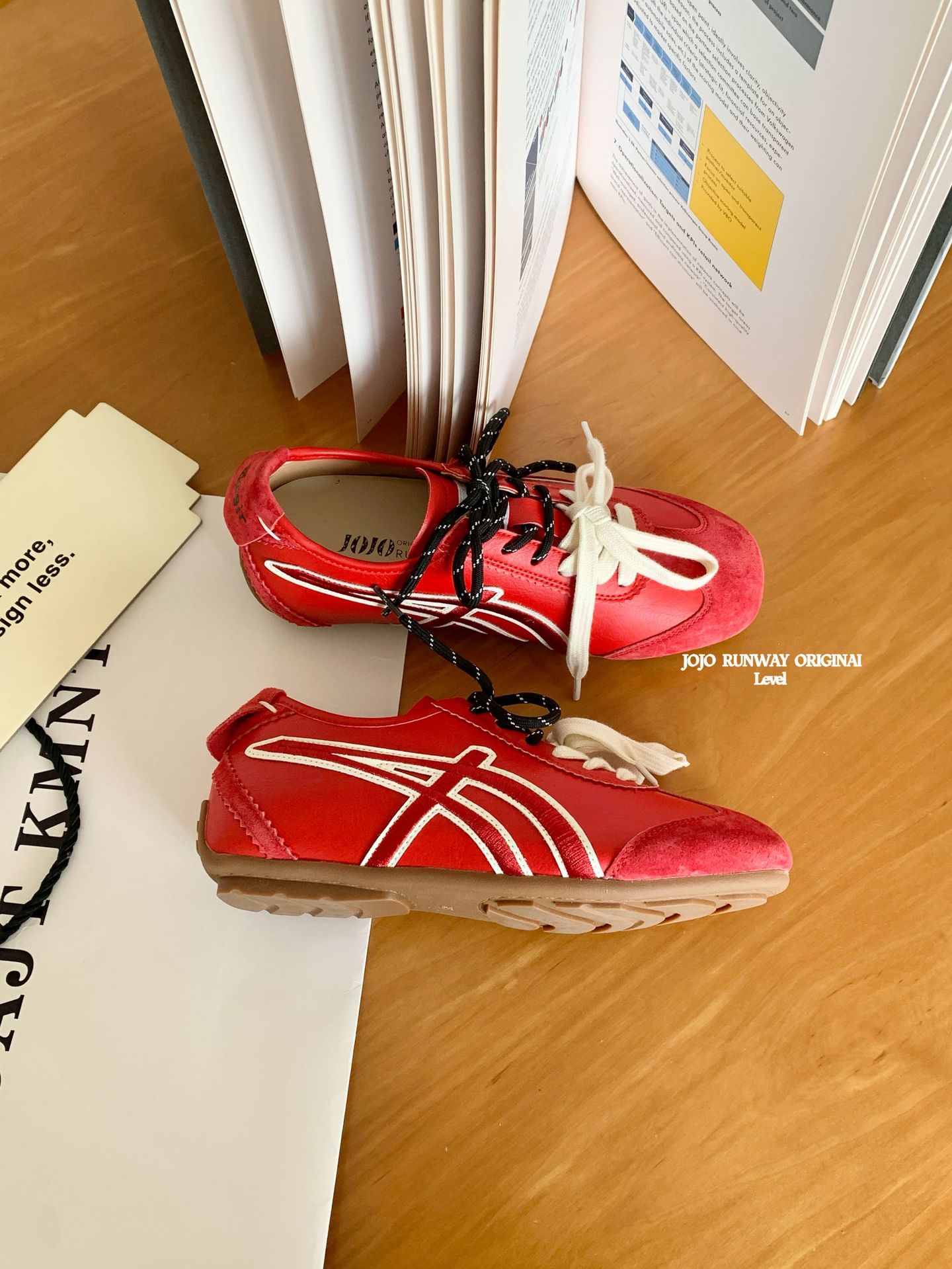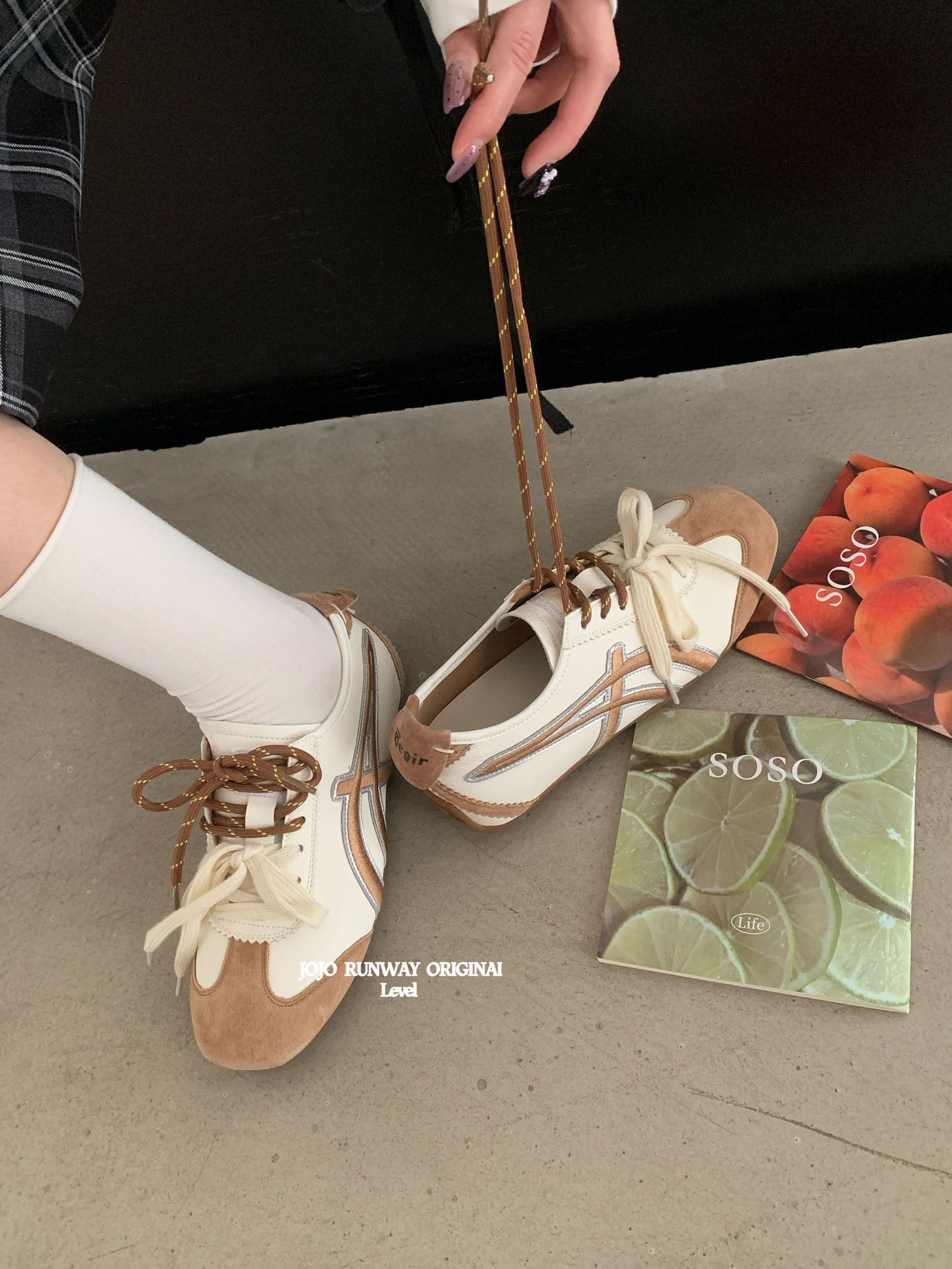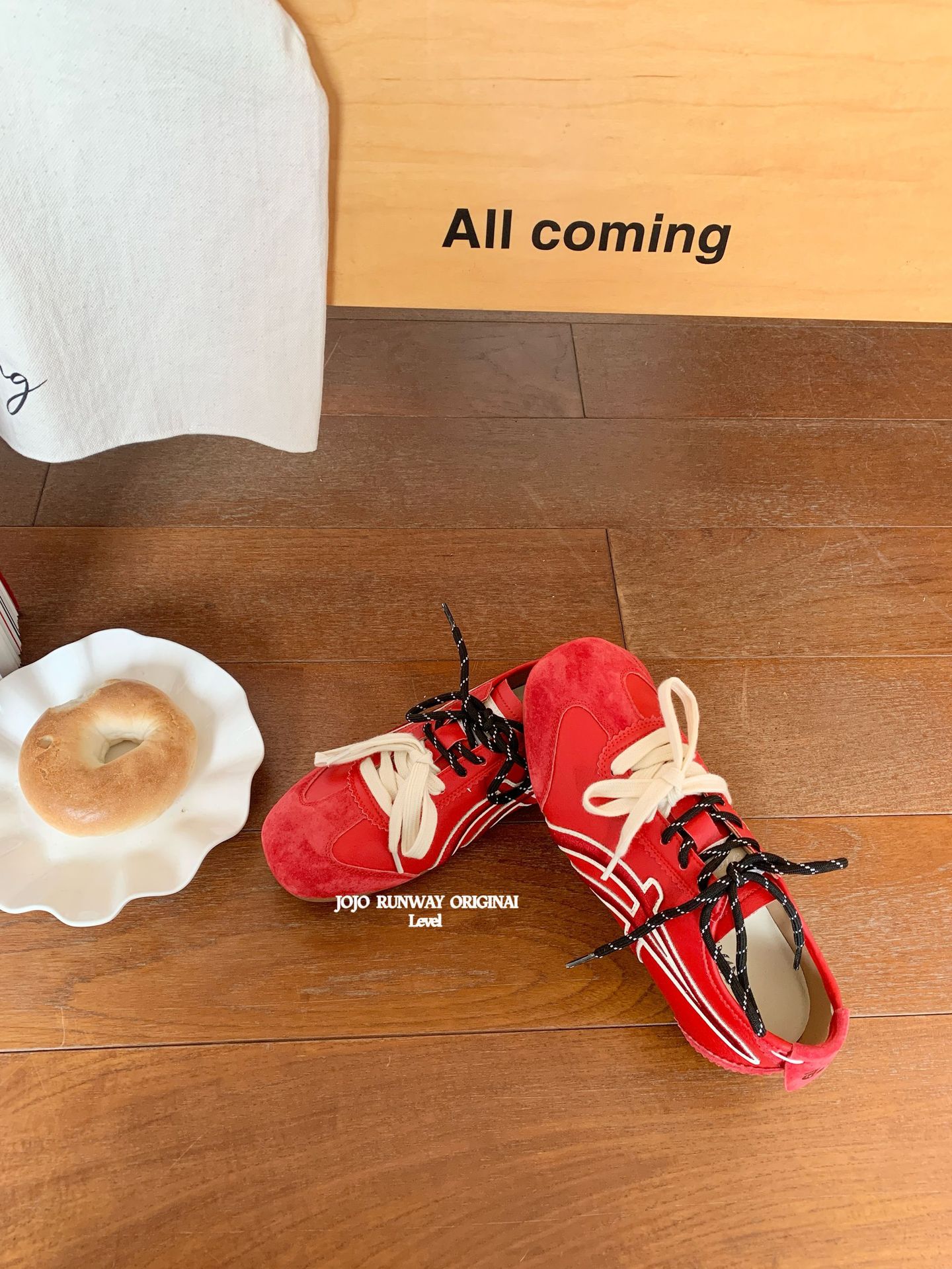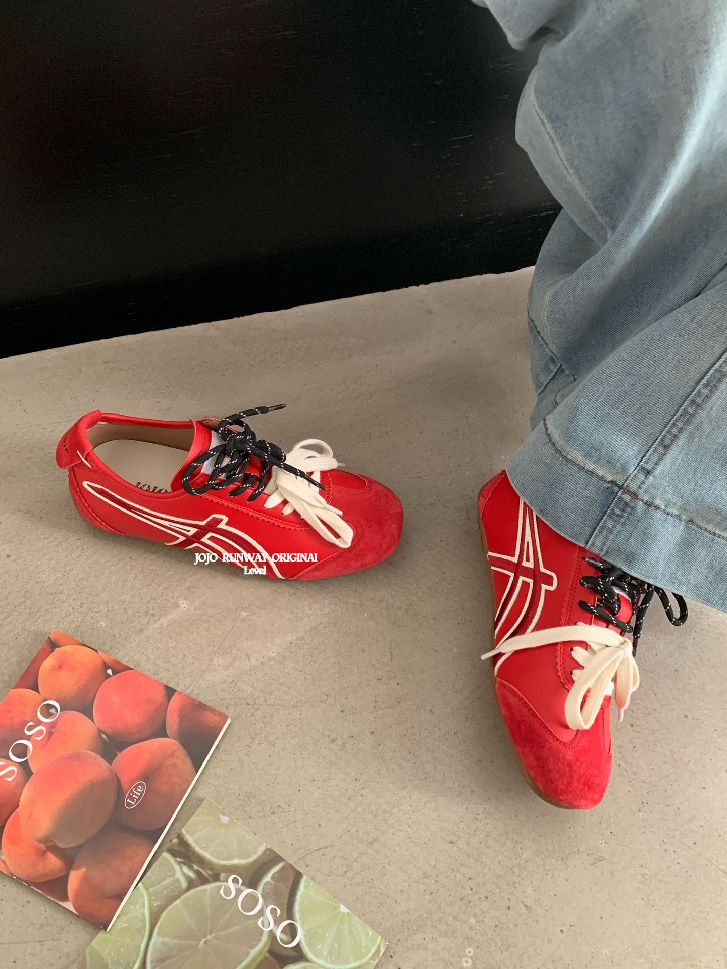 정품 가죽 더블 신발 끈 복고풍 부드러운 밑창 빨간색 육군 훈련 신발 여성 2025 봄 새로운 흰색 신발 스포츠 및 레저 운동화