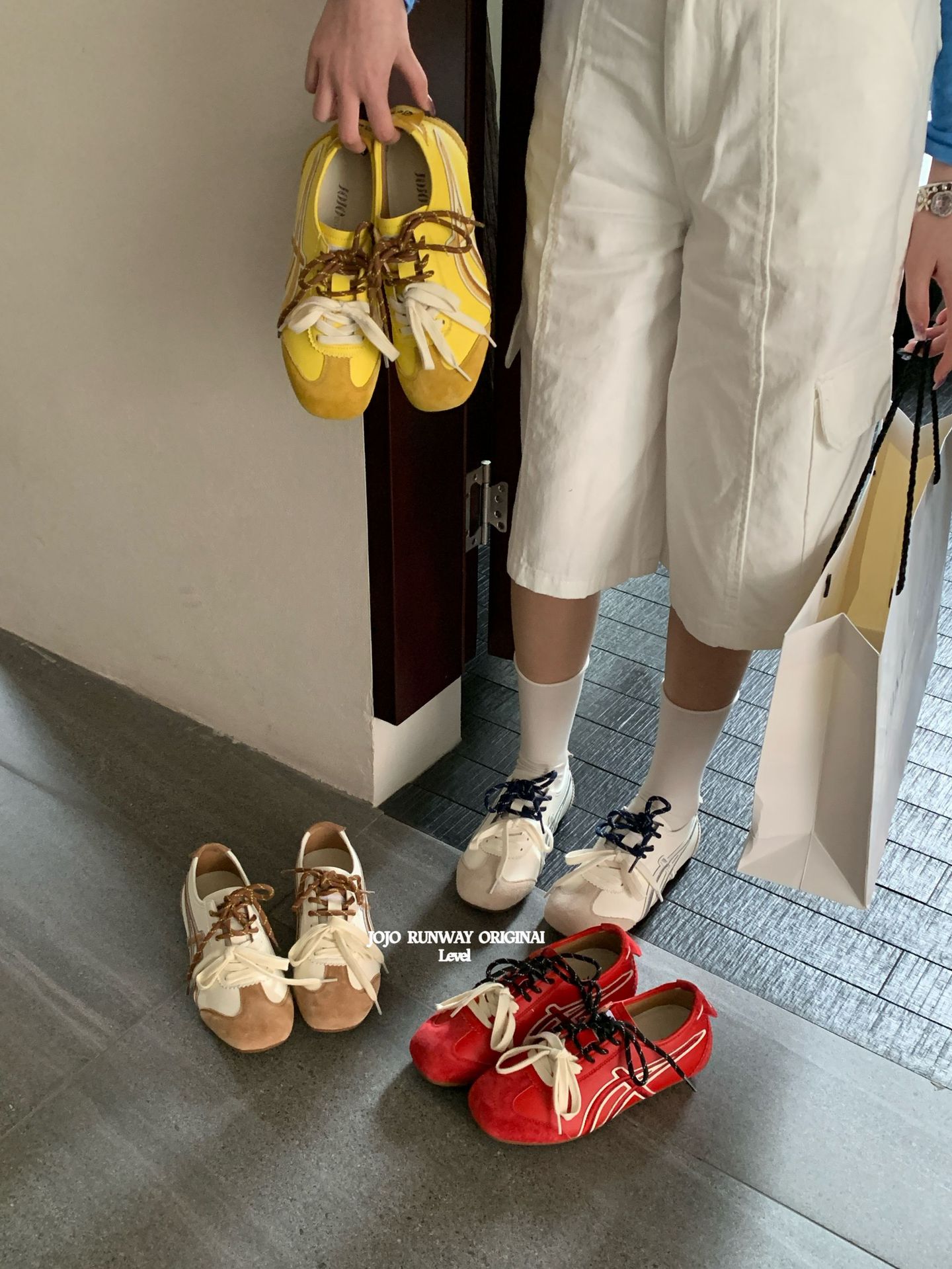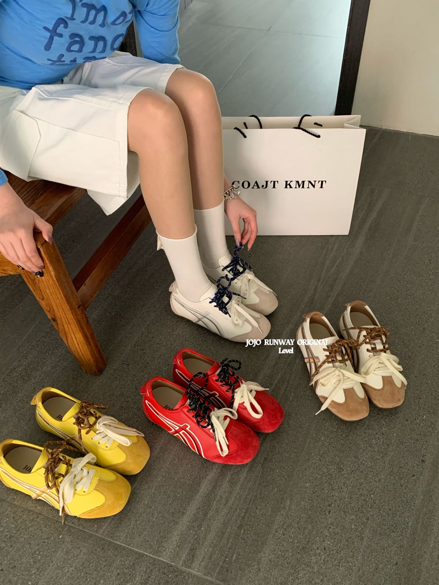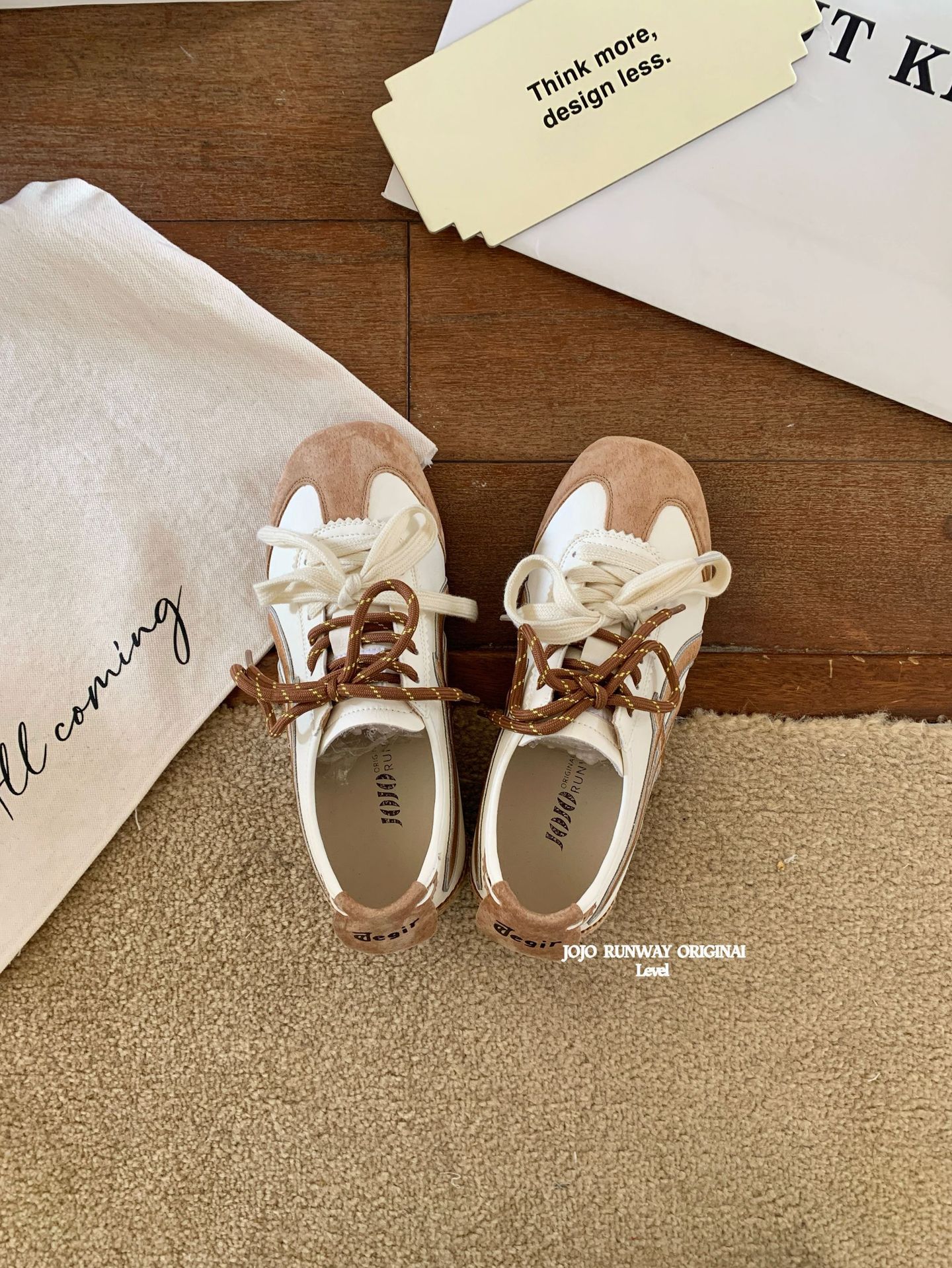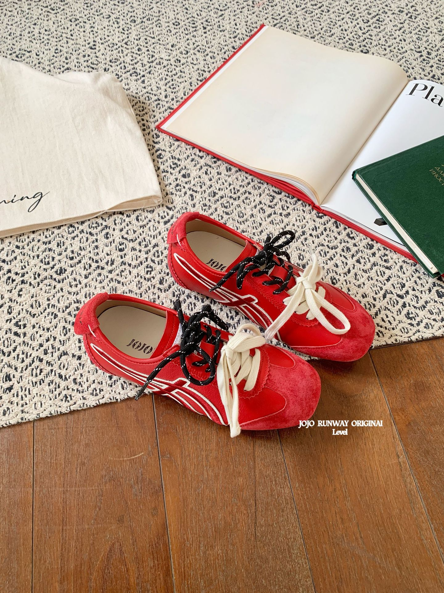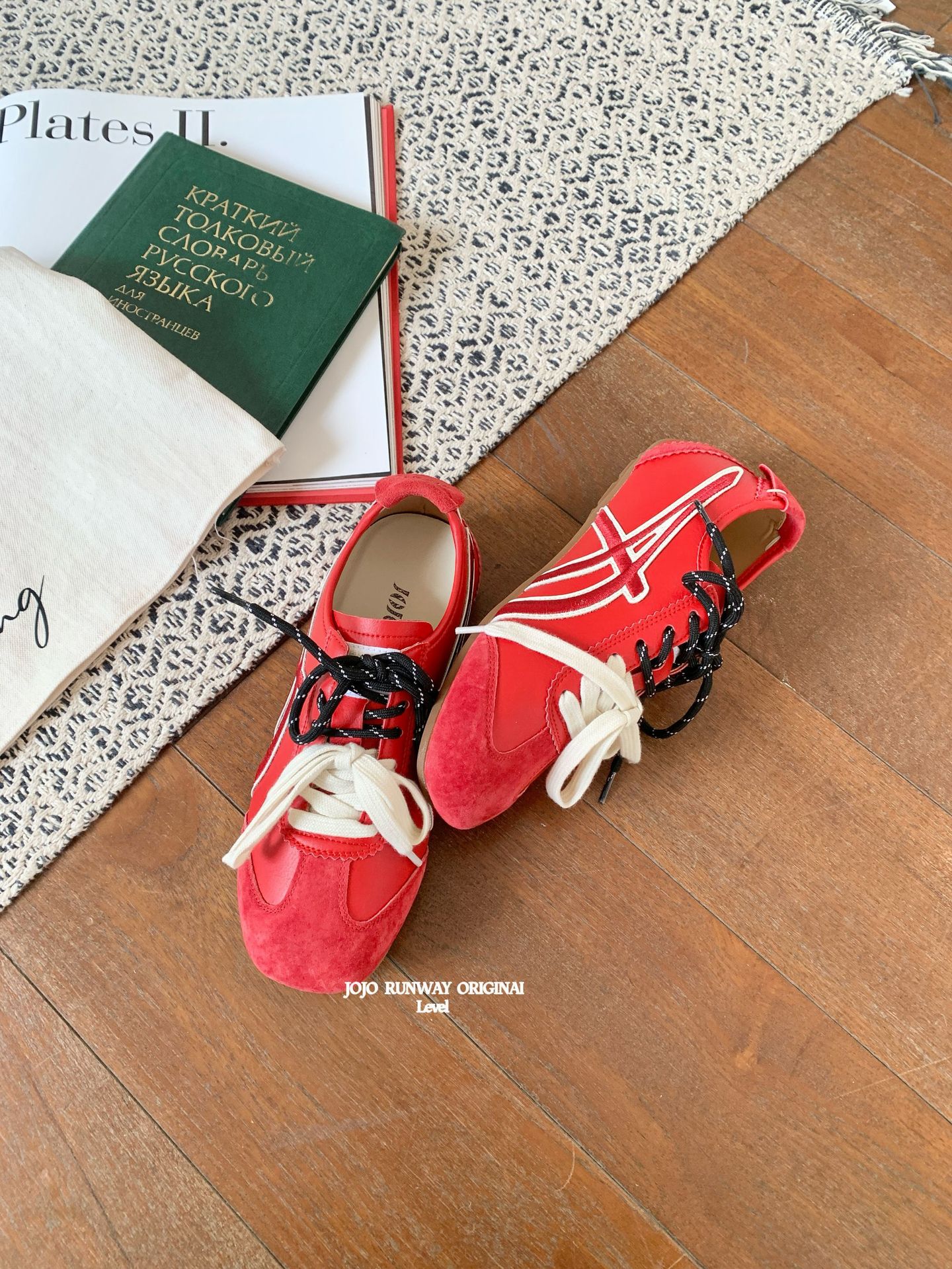 정품 가죽 더블 신발 끈 복고풍 부드러운 밑창 빨간색 육군 훈련 신발 여성 2025 봄 새로운 흰색 신발 스포츠 및 레저 운동화