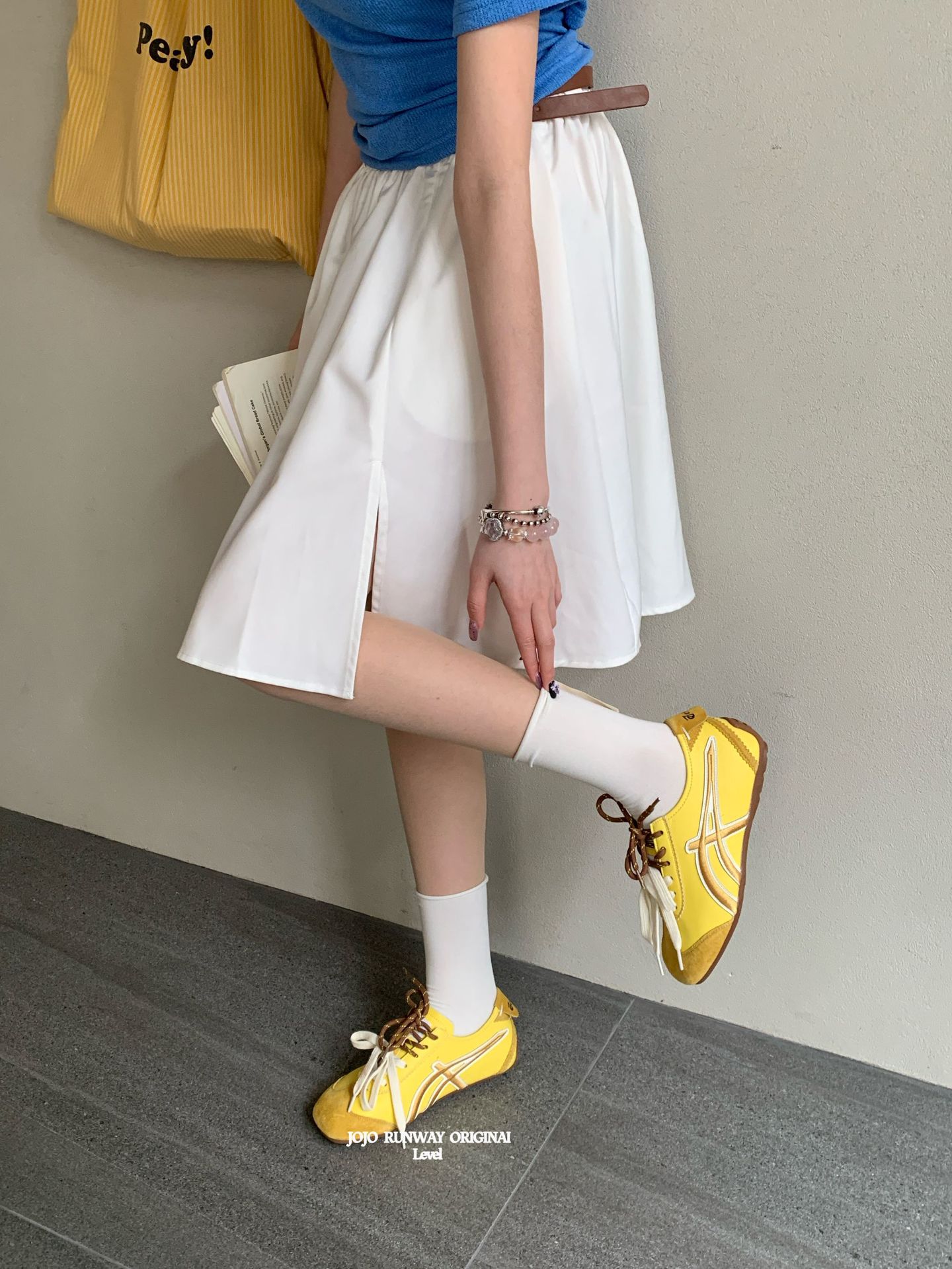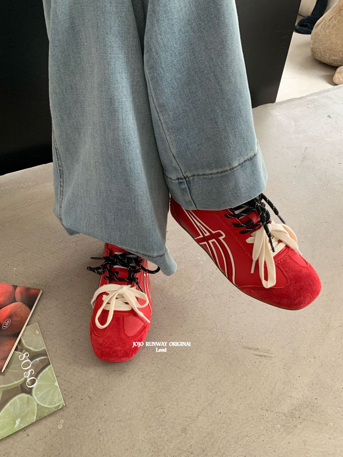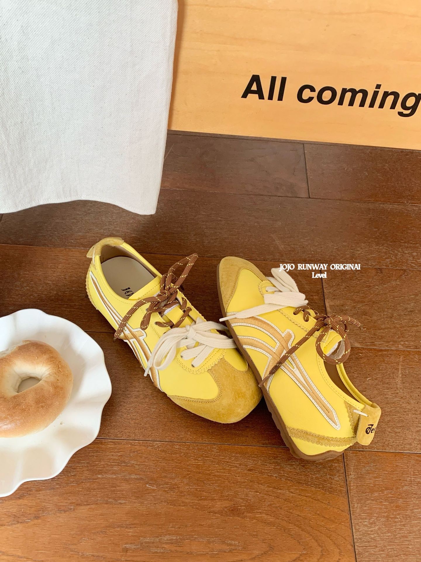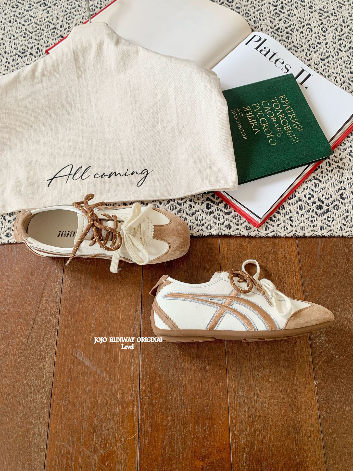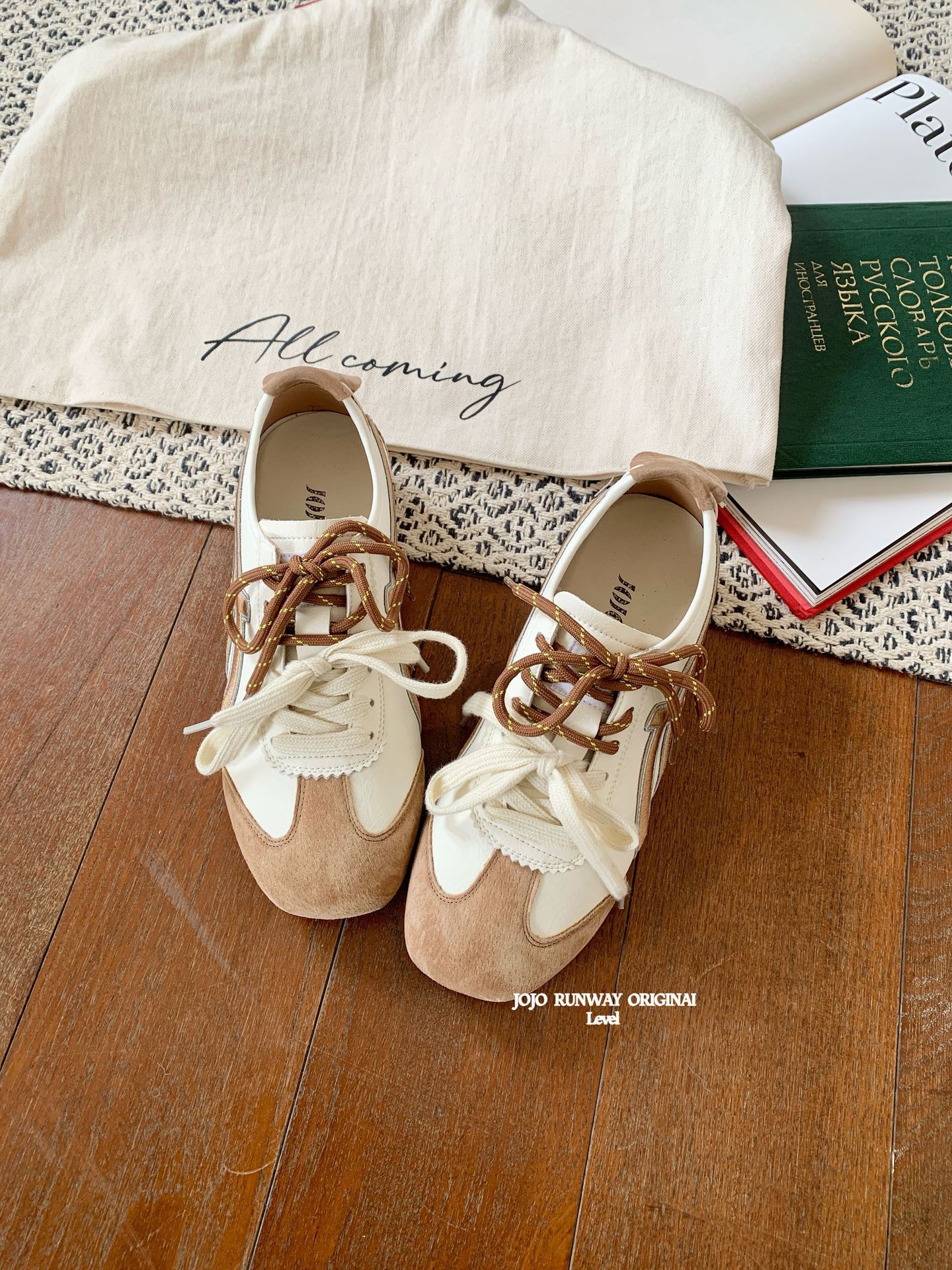 정품 가죽 더블 신발 끈 복고풍 부드러운 밑창 빨간색 육군 훈련 신발 여성 2025 봄 새로운 흰색 신발 스포츠 및 레저 운동화