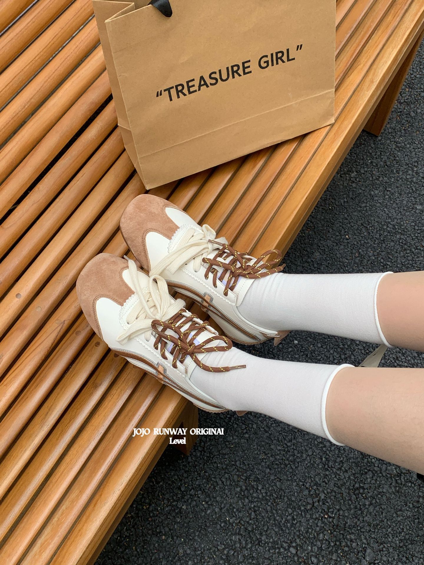 정품 가죽 더블 신발 끈 복고풍 부드러운 밑창 빨간색 육군 훈련 신발 여성 2025 봄 새로운 흰색 신발 스포츠 및 레저 운동화스토어 가기