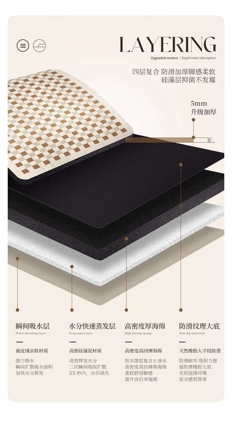 빠른 건조 흡수성 욕실 매트 Diatom 진흙 화장실 문 카펫 문 미끄럼 방지 욕실 문 드라이 매트스토어 가기