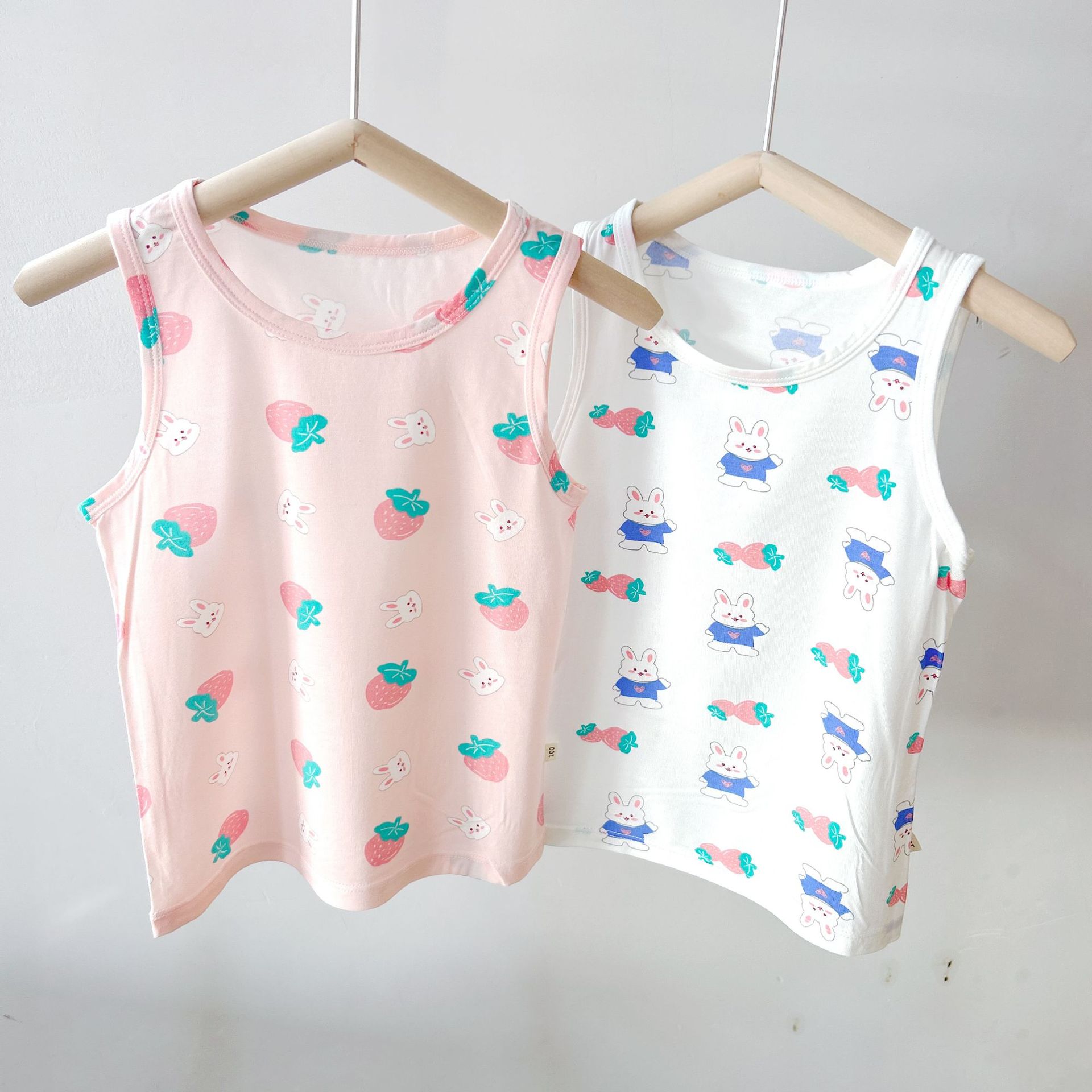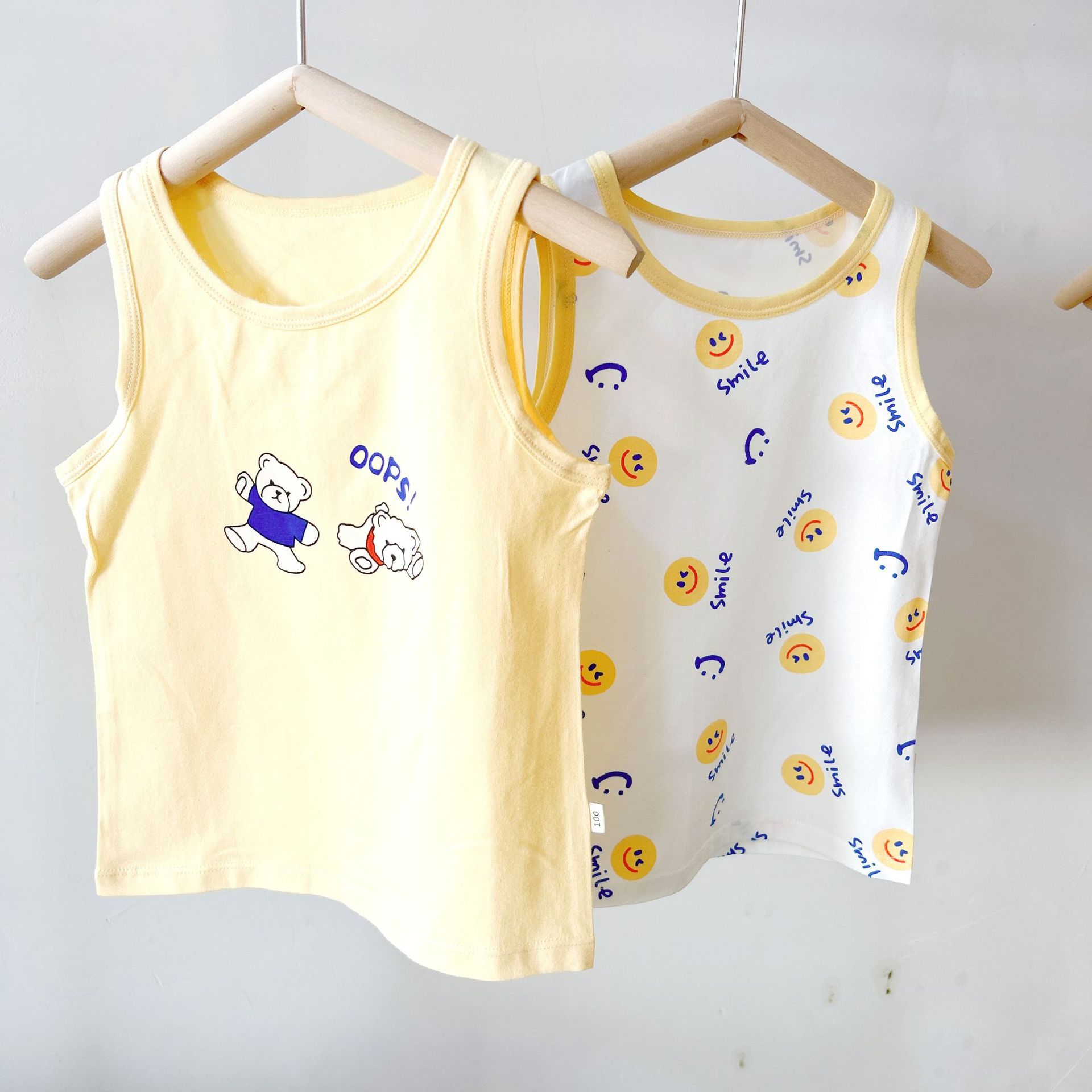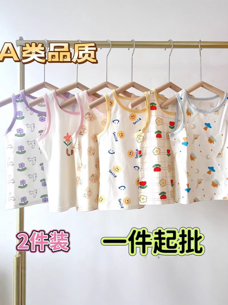 여름 어린이 조끼 순면 라이크라 만화 인쇄 어린이 남성과 여성의 어린이 착용 민소매 기본 셔츠 작은 조끼 얇은스토어 가기