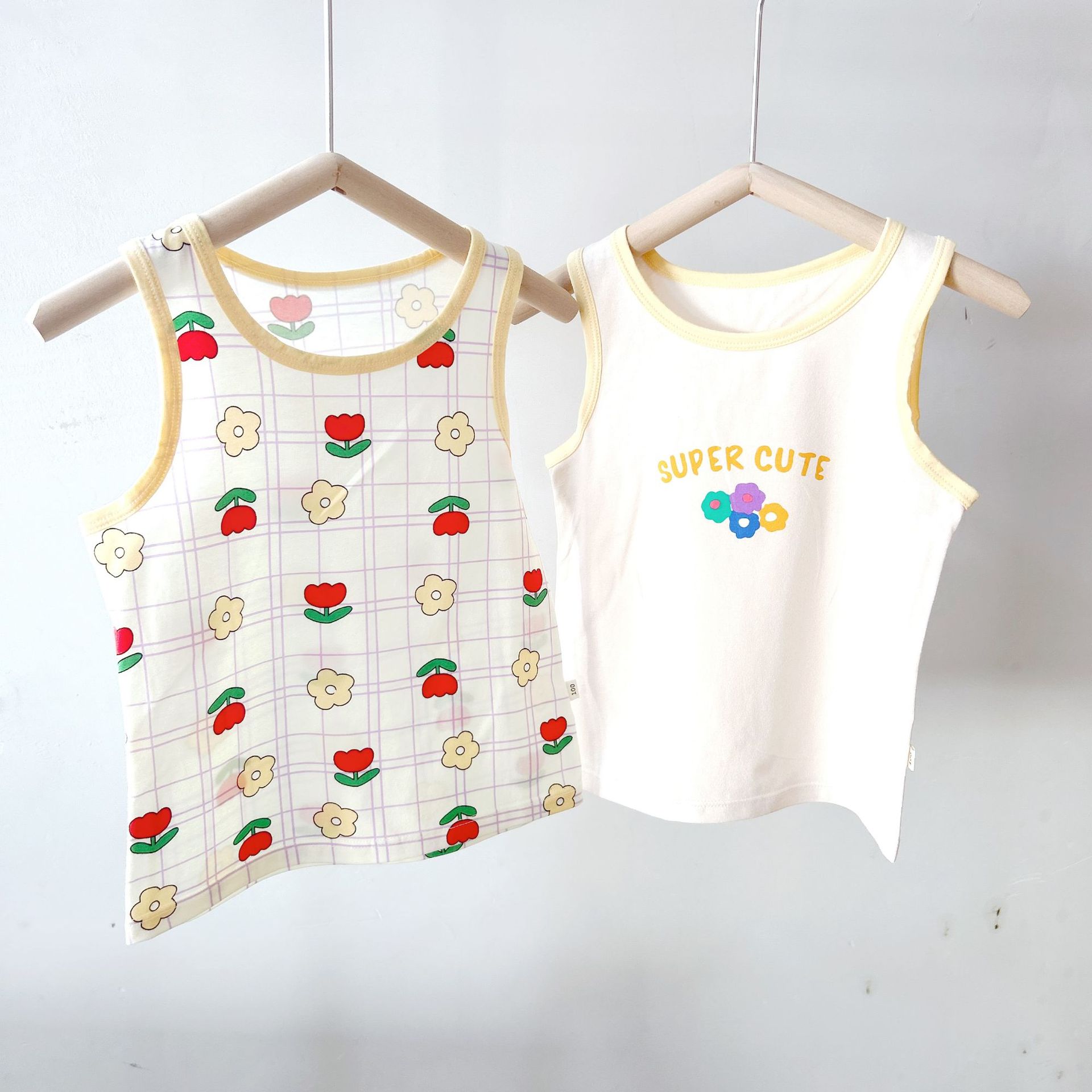 여름 어린이 조끼 순면 라이크라 만화 인쇄 어린이 남성과 여성의 어린이 착용 민소매 기본 셔츠 작은 조끼 얇은