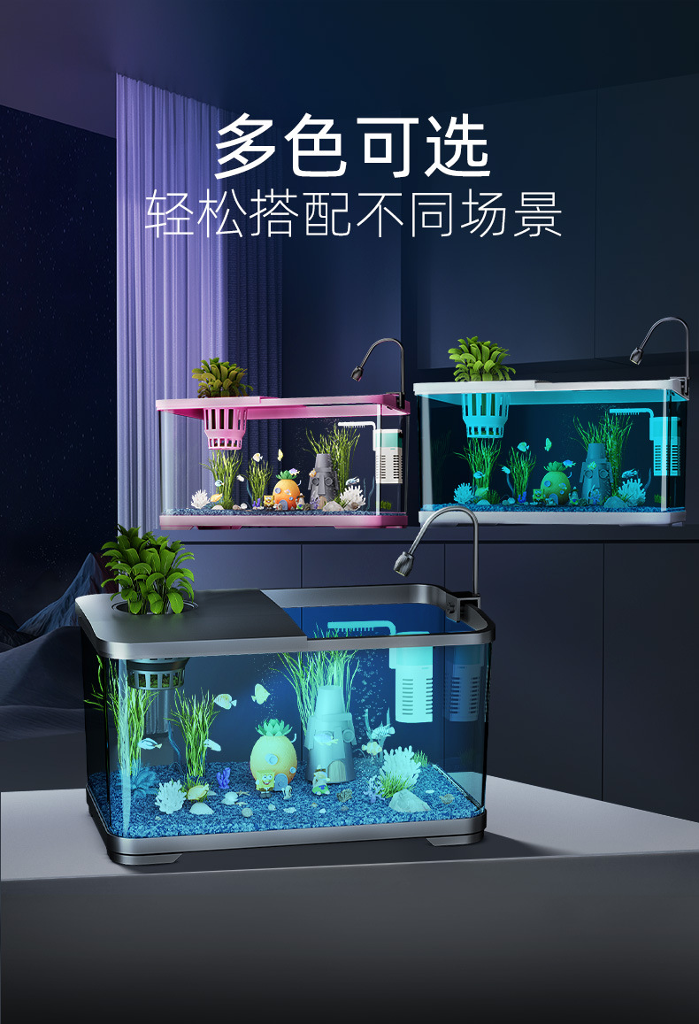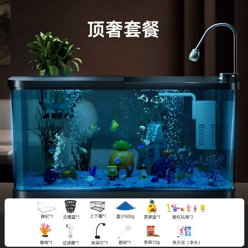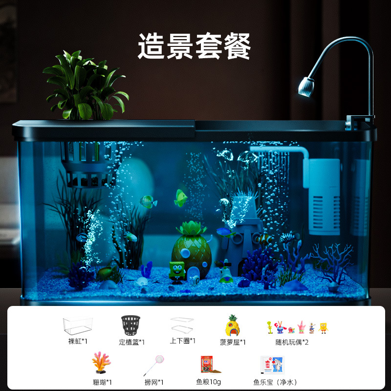 올인원 기계 생태 풍경 풀 세트 2025 새로운 가정용 거실 장식품 작은 데스크탑 탱크를 만드는 물고기 탱크 필터 산소스토어 가기