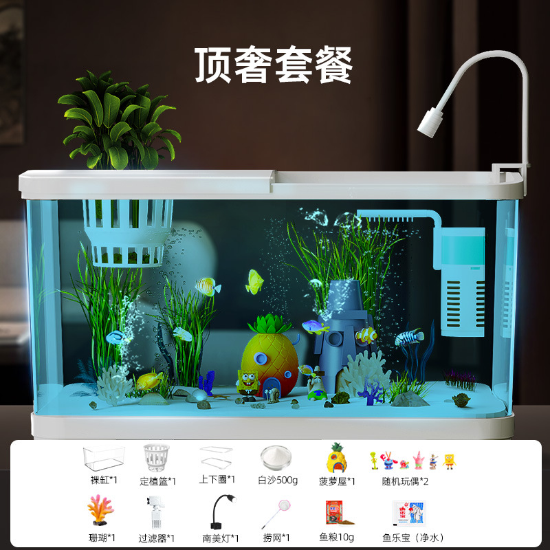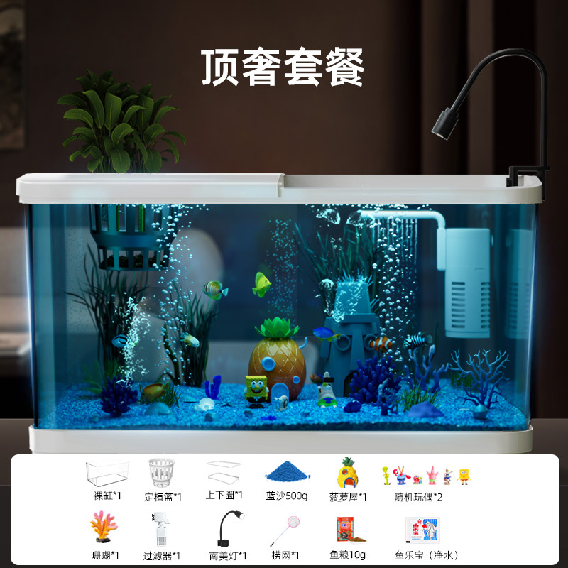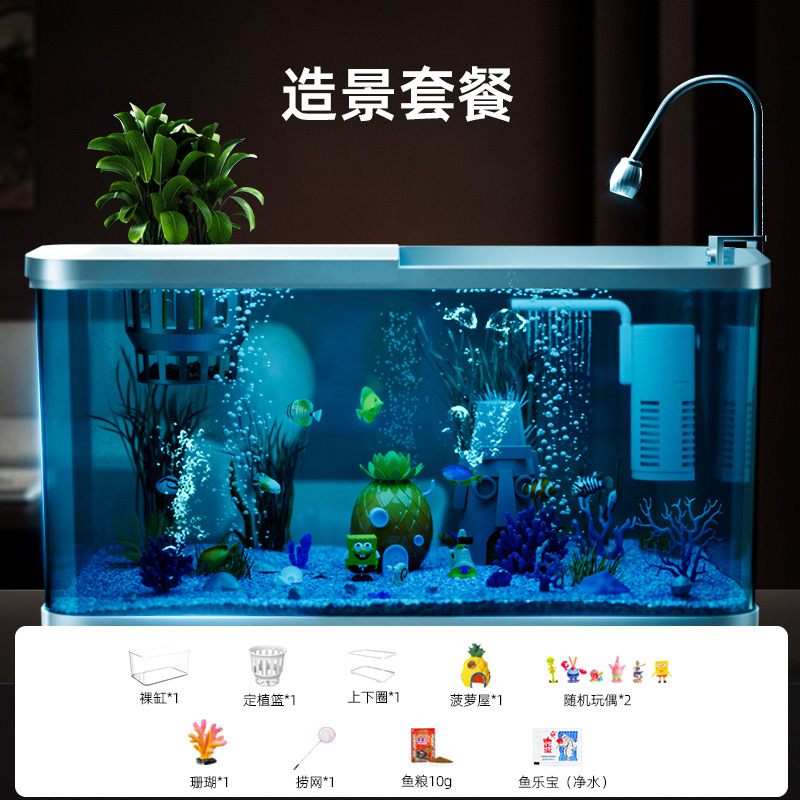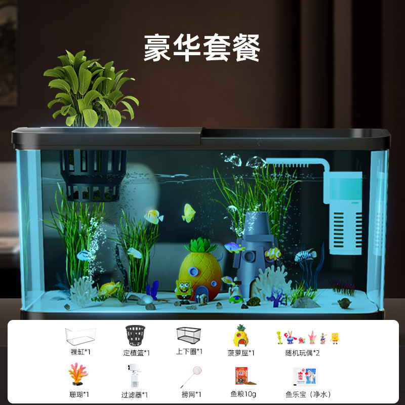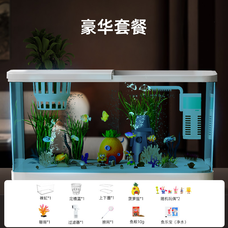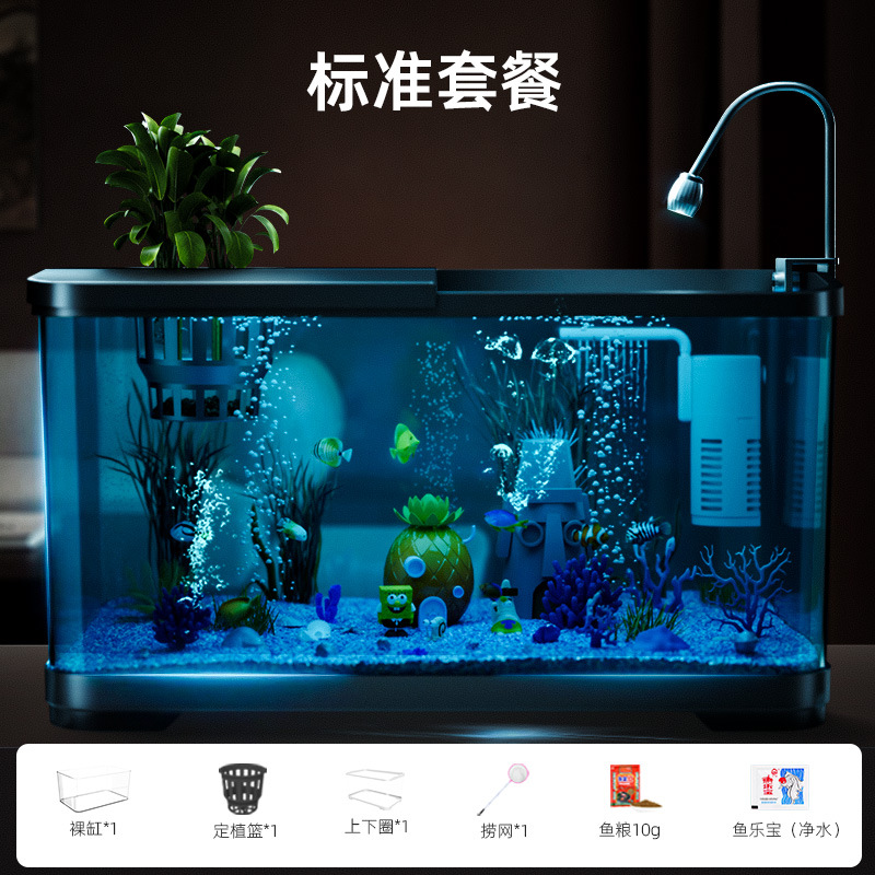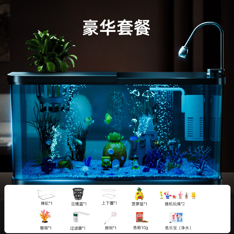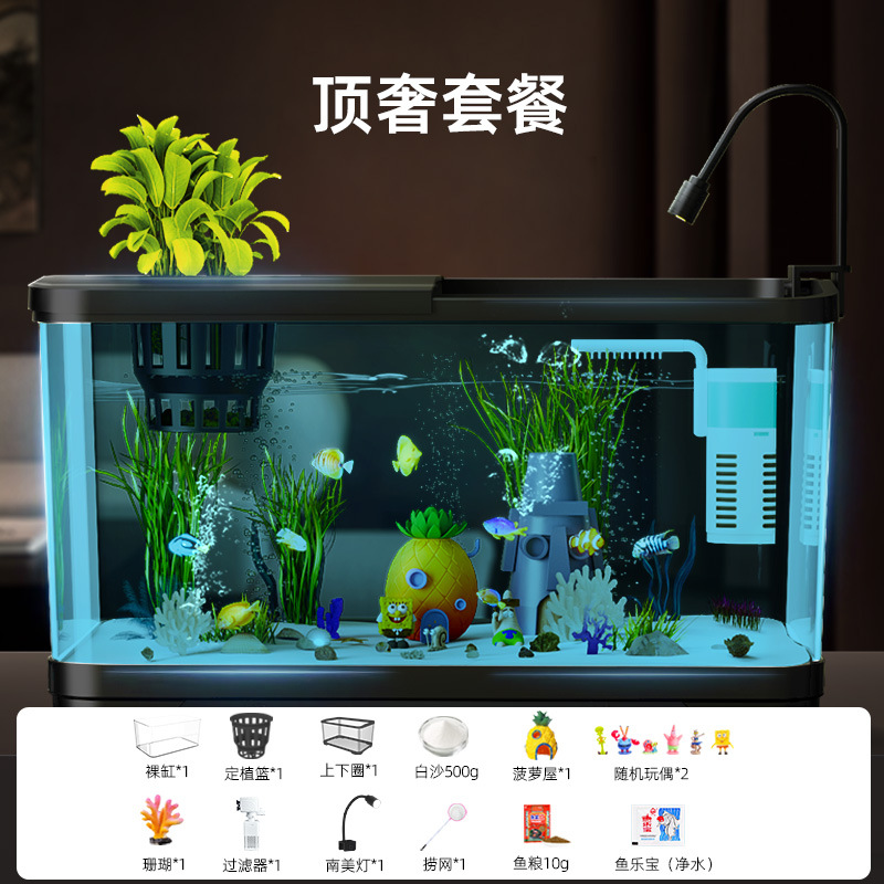 올인원 기계 생태 풍경 풀 세트 2025 새로운 가정용 거실 장식품 작은 데스크탑 탱크를 만드는 물고기 탱크 필터 산소