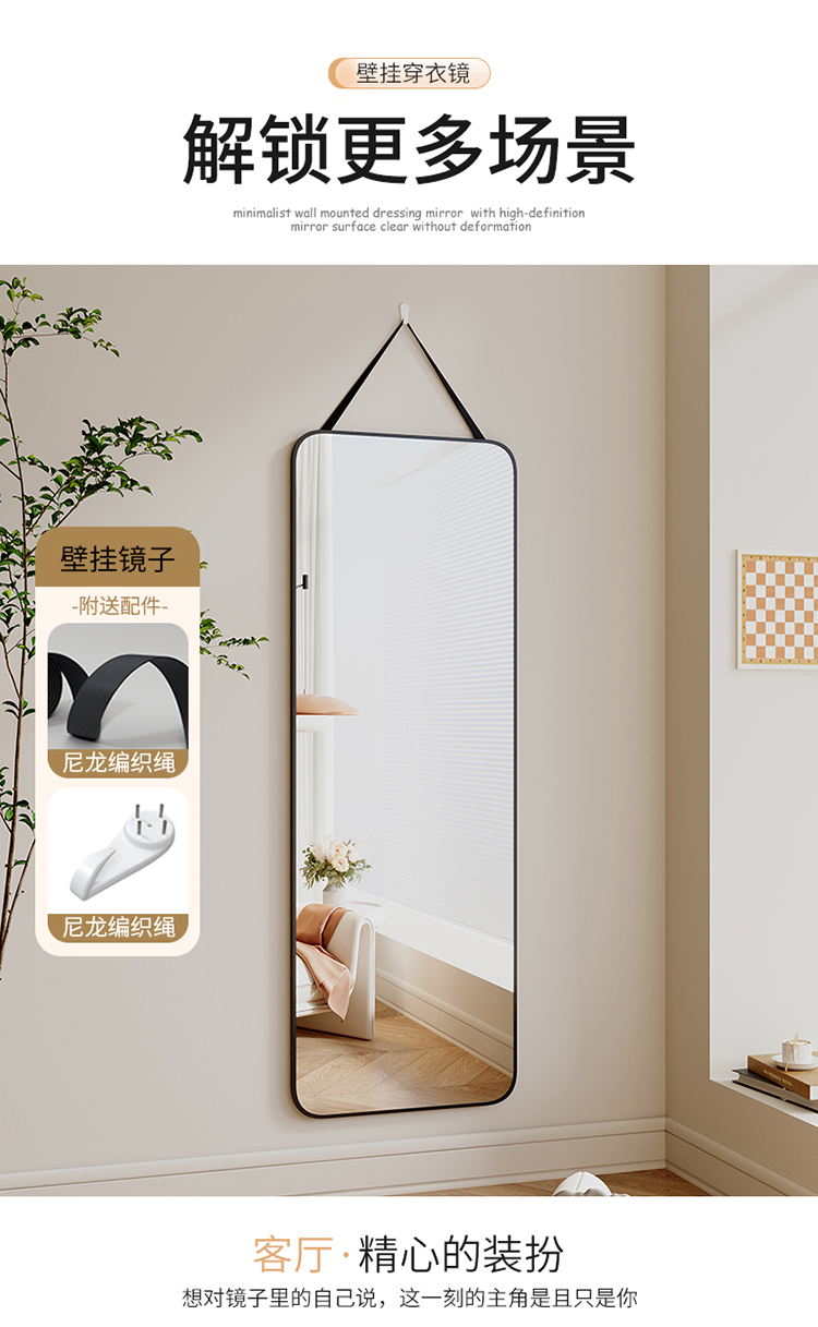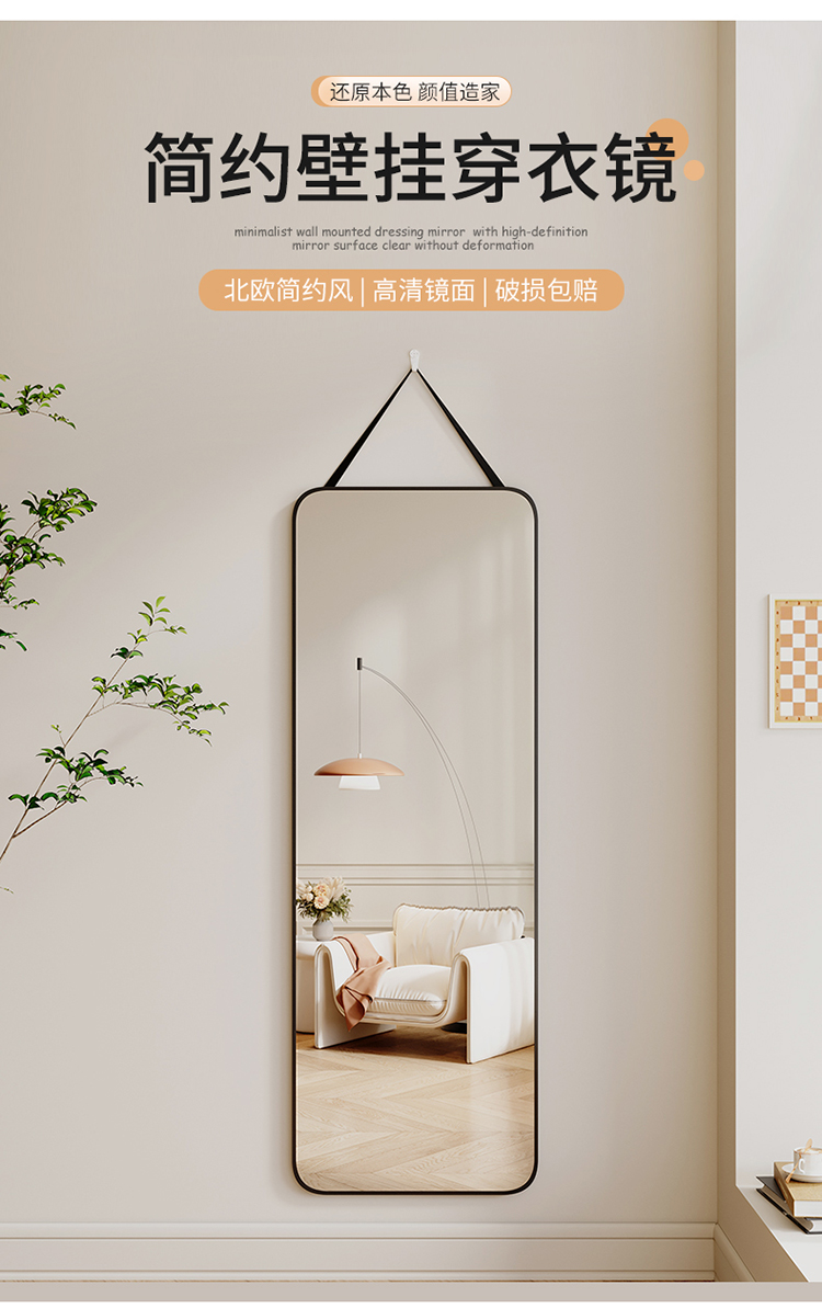 거울 벽에 장착 된 셀프 접착 풀 바디 플로어 미러 홈 덜링 미러 인스 타 그램 스타일 소녀 침실 기숙사 벽걸이 장착 피팅 미러