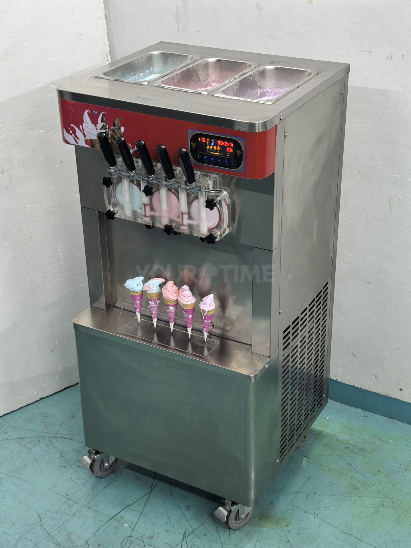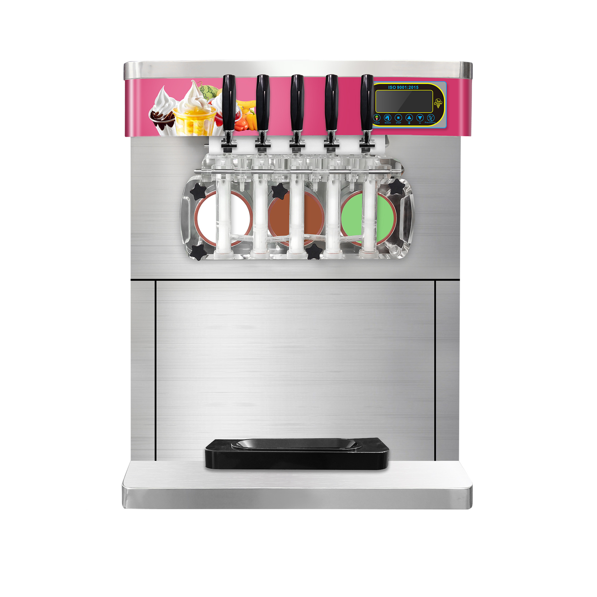 5가지 맛 완전 자동 아이스크림 기계 데스크탑 수직 소프트 아이스크림 기계 21리터 아이스크림 기계(사전 냉각 포함)