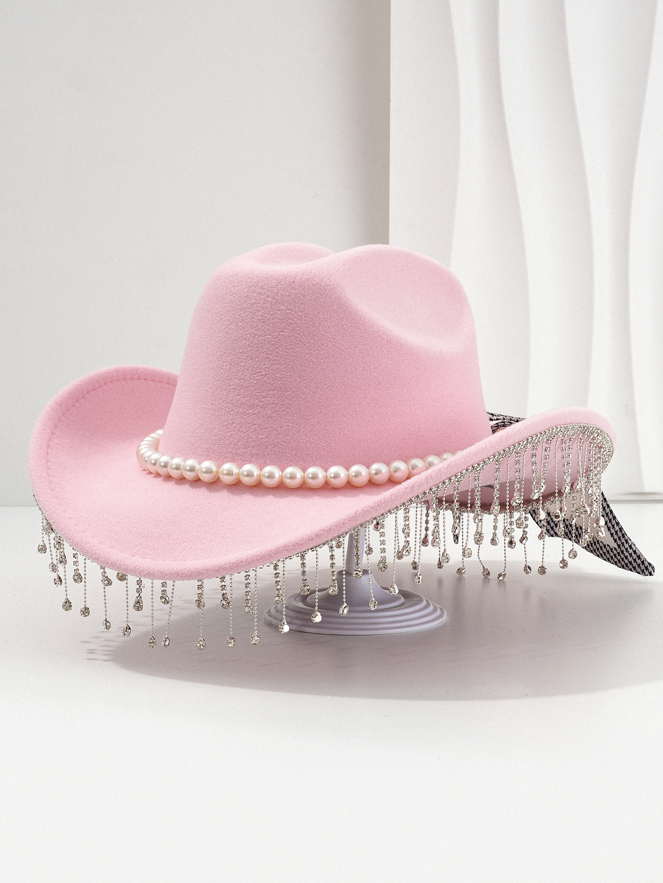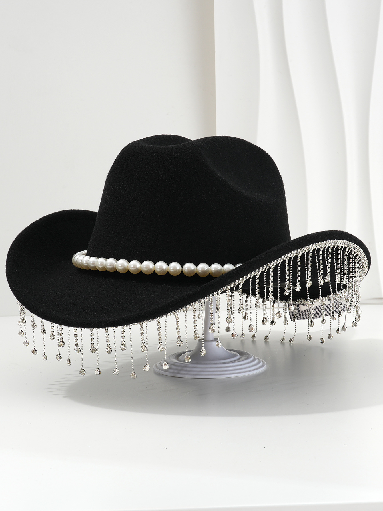 跨境爆款女士时尚英伦礼帽珍珠复古丝带水钻流苏装饰适用蜜月派对