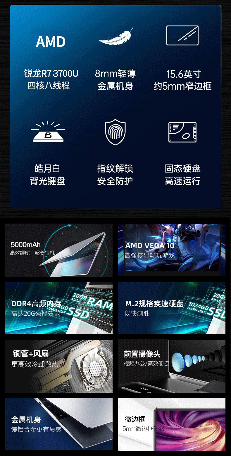 AMD Ryzen R7 노트북 15.6inch 얇고 가벼운 휴대용 지문인식 사무용 게임용 노트북 도매 크로스보더