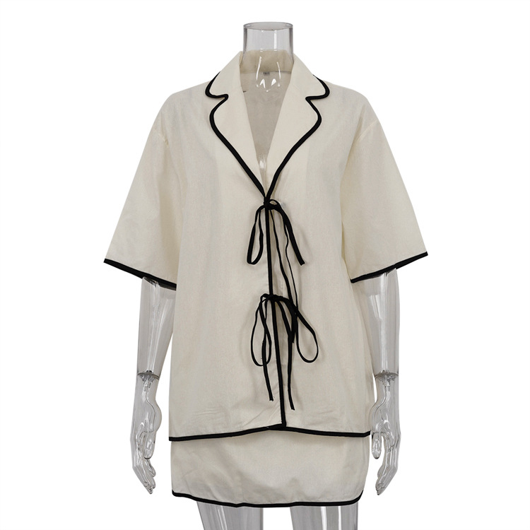 2025 새로운 스타일 코튼 캐주얼 대비 힙합 스커트 세트 여성용 옷깃 하프 슬리브 레이스 카디건 탑 2 피스 세트
