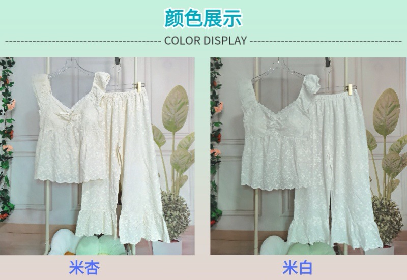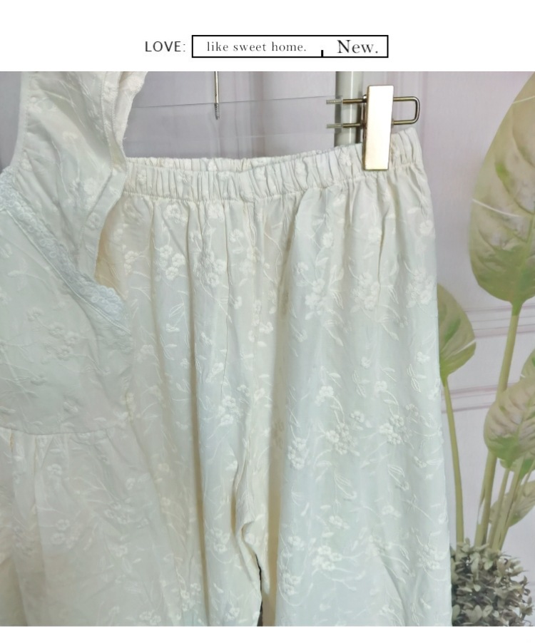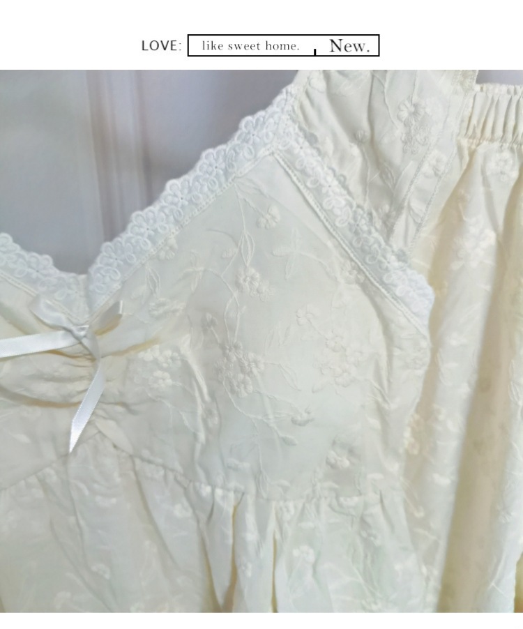 슬링과 가슴 패드 잠옷 여성의 여름 새로운 도착 헤비 듀티 자수 달콤한 달콤한 공주 자른 바지 고급 세트스토어 가기