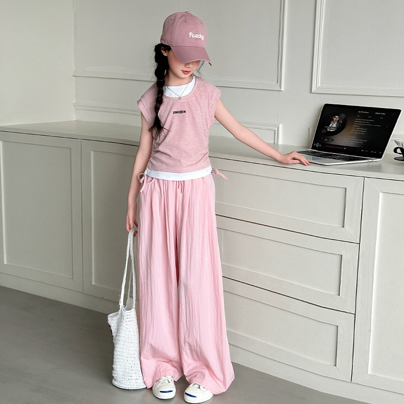 소녀 여름 세트 2025 새로운 중학교 소녀 여름 소녀를위한 아름다운 여름 원피스 소녀들을위한 아름다운 여름