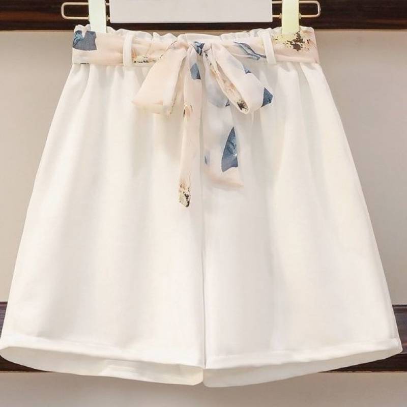 플러스 사이즈 여자 배꼽 덮고있는 시폰 셔츠 반바지 세트 가벼운 뚱뚱한 소녀를위한 여자 여름 투피스 세트