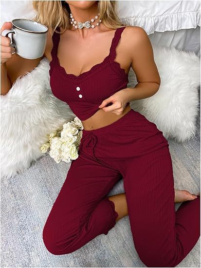 • 버건디 투피스 바지 세트