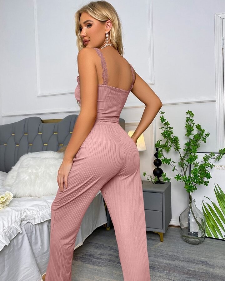 • 핑크색 바지 투피스 세트