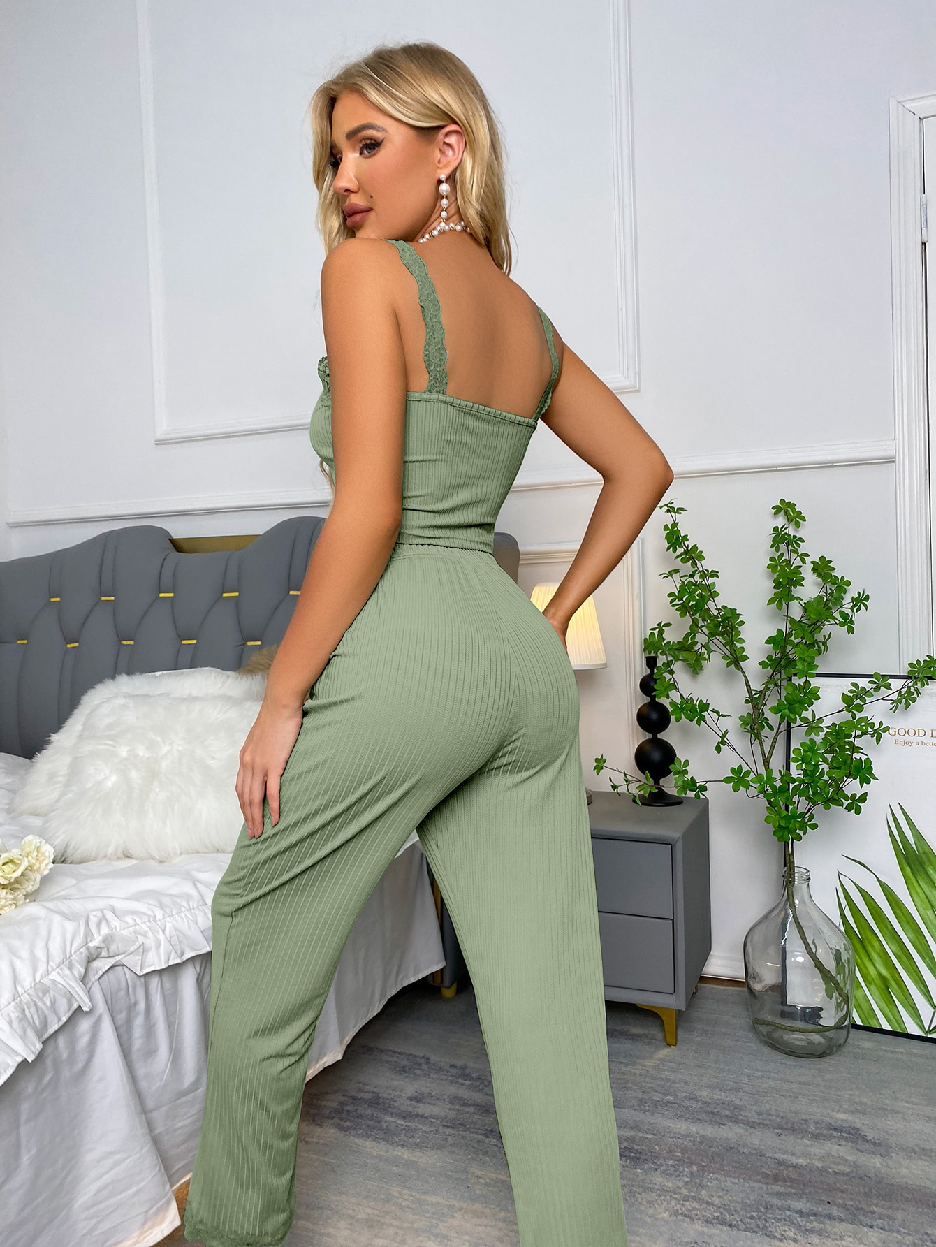 • 라이트 그린 팬츠 투피스 세트