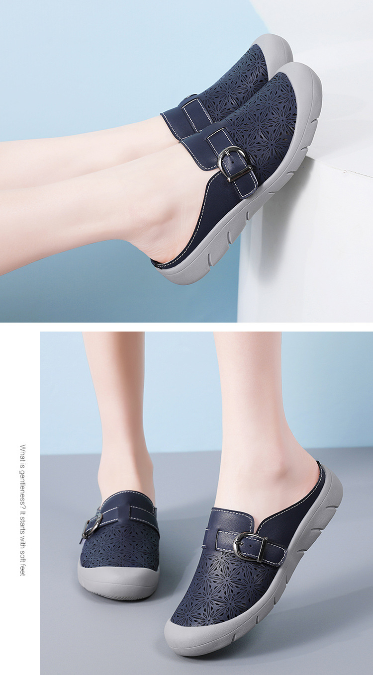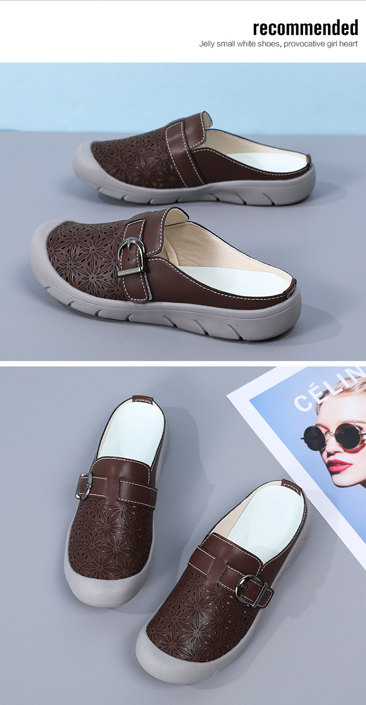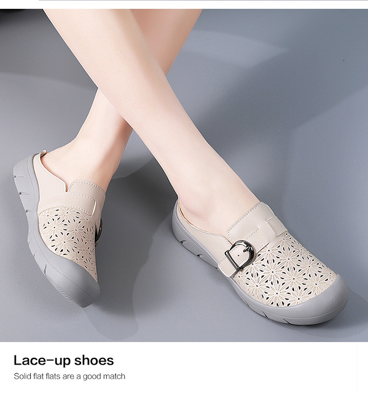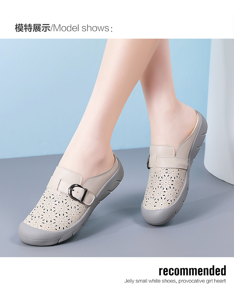 플러스 사이즈 여름 슬리퍼 통기성 중공 신발 하프 소프 플랫 캐주얼 의상 샌들 편안한 엄마 신발 싱글 레이어 신발