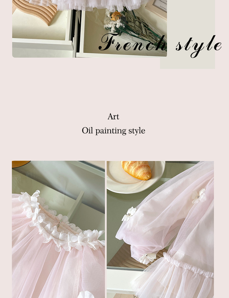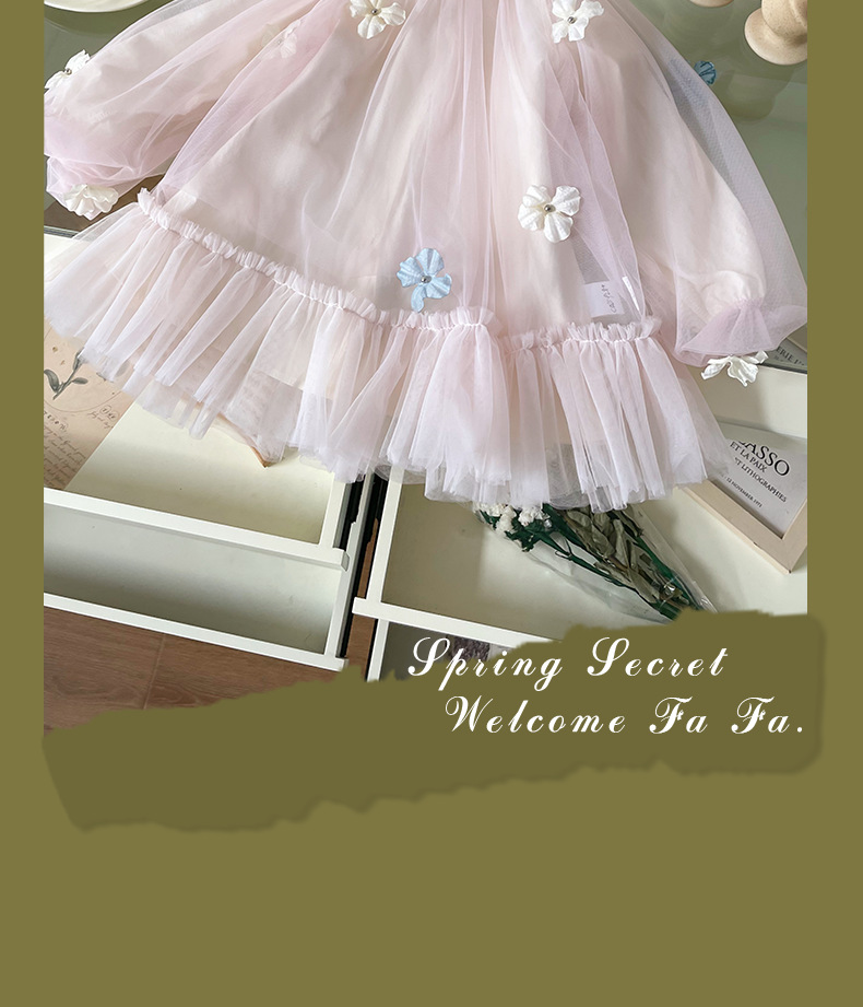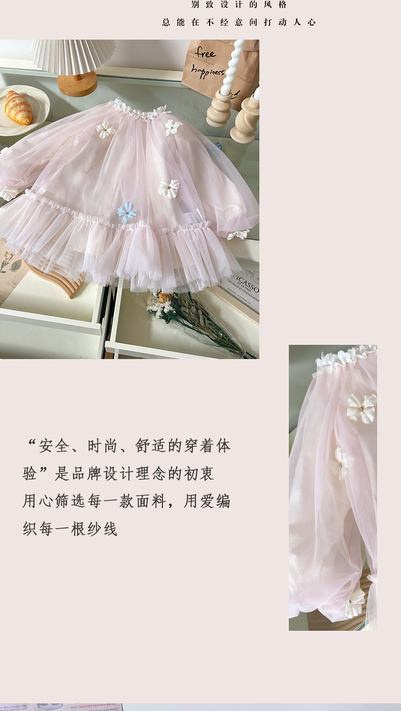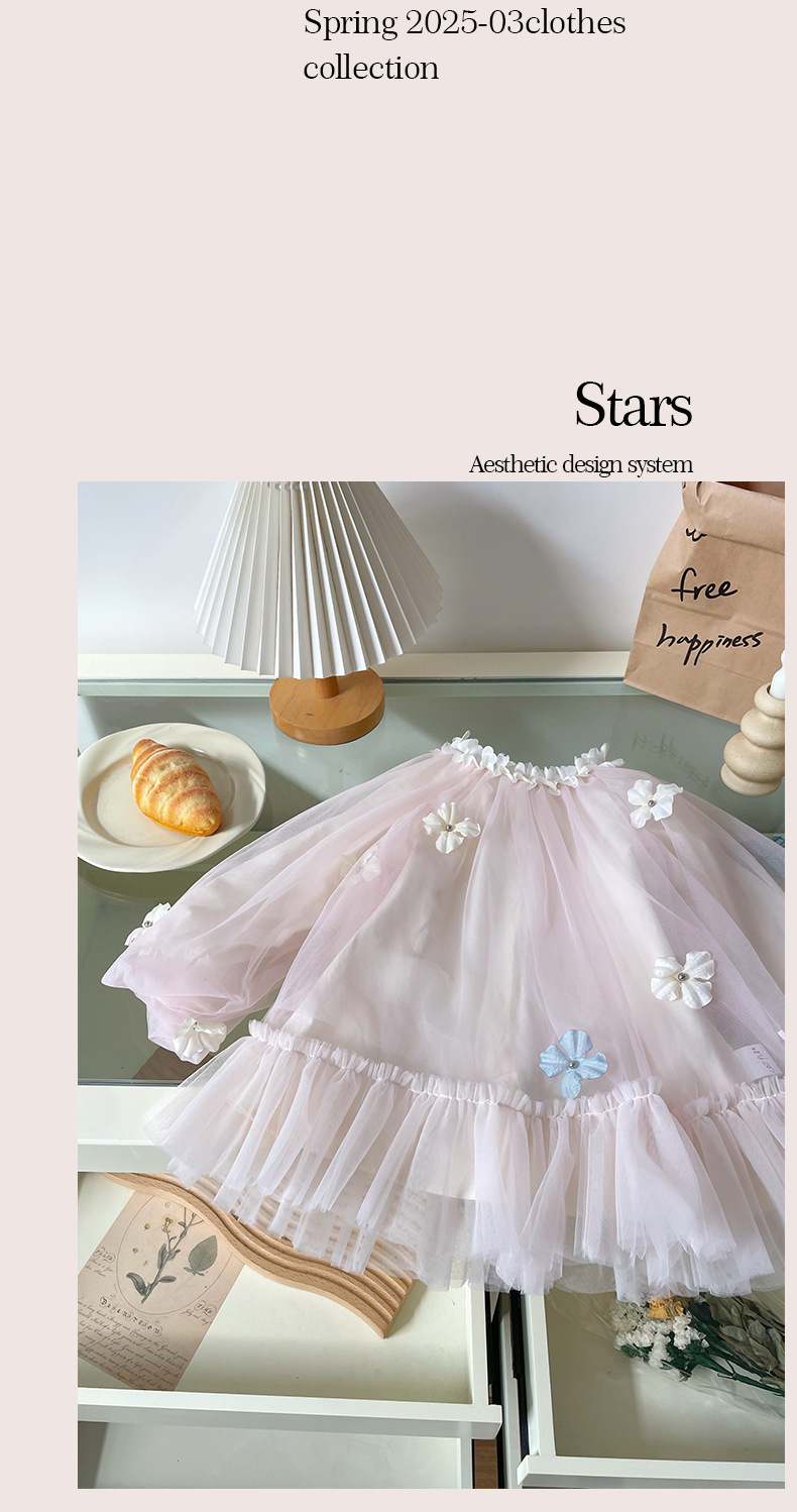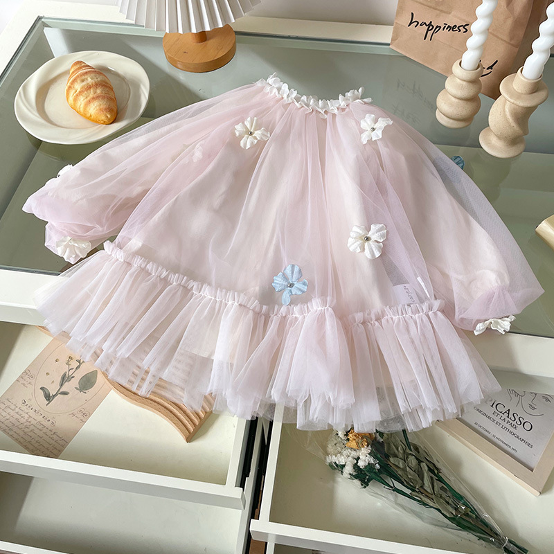 [재고] CQ259280 소녀 원피스 봄과 여름 2025 새로운 여자 꽃 메쉬 원피스스토어 가기