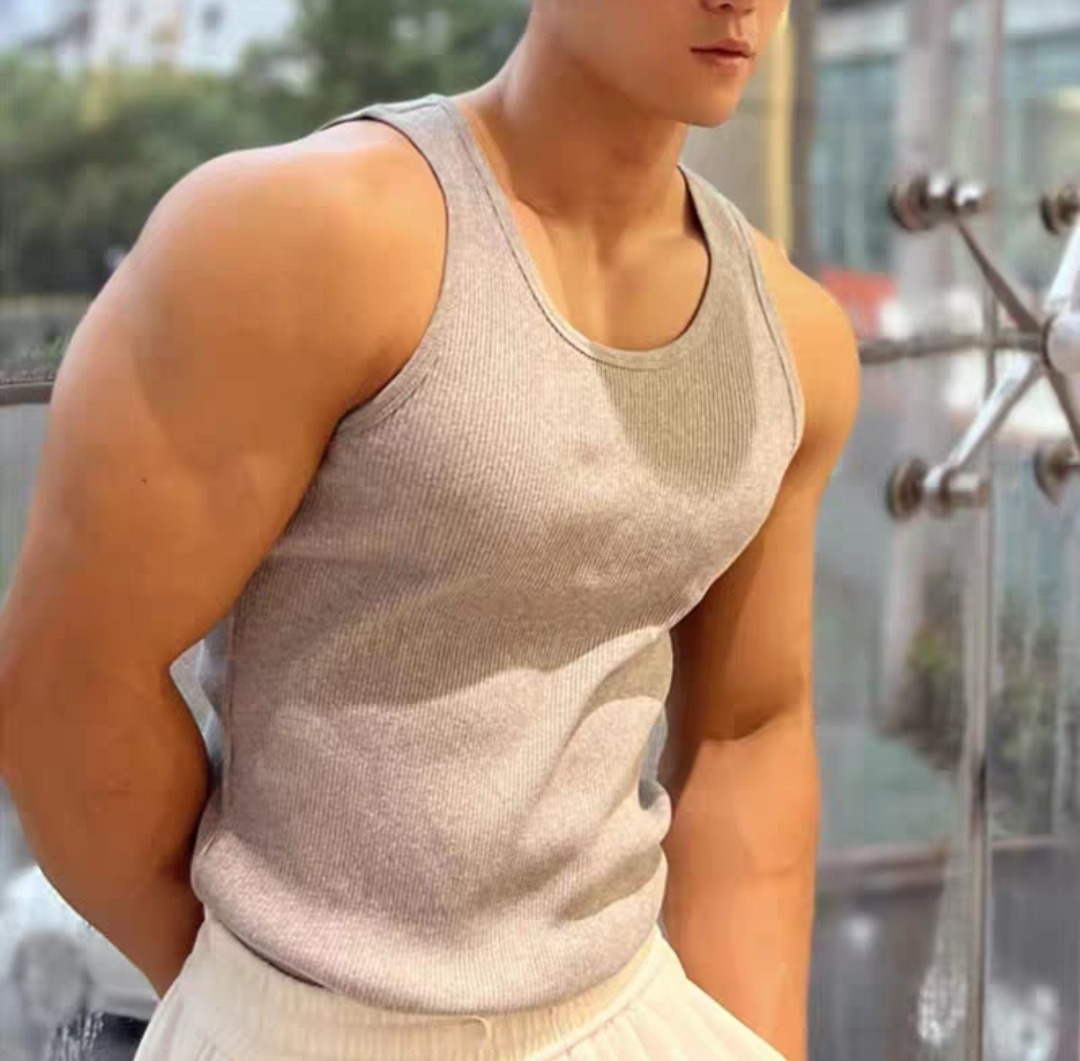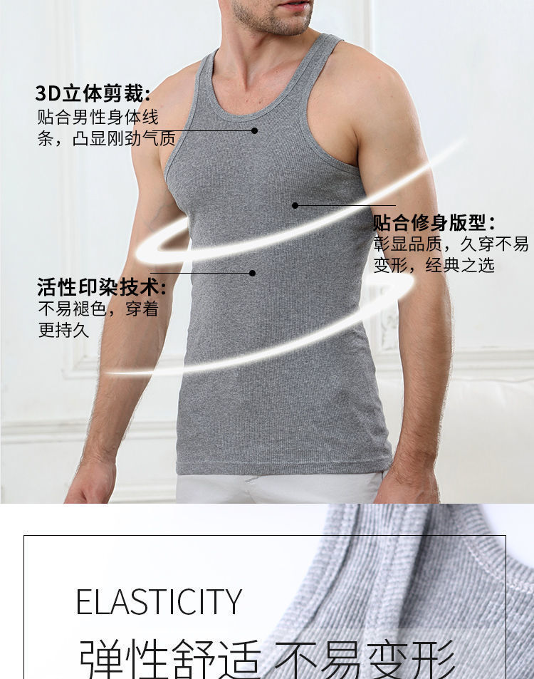 코튼 두꺼운 실 슬림 스트레치 스포츠 피트니스 조끼 남자 둥근 목 플러스 사이즈 빠른 건조 근육 훈련 통기성