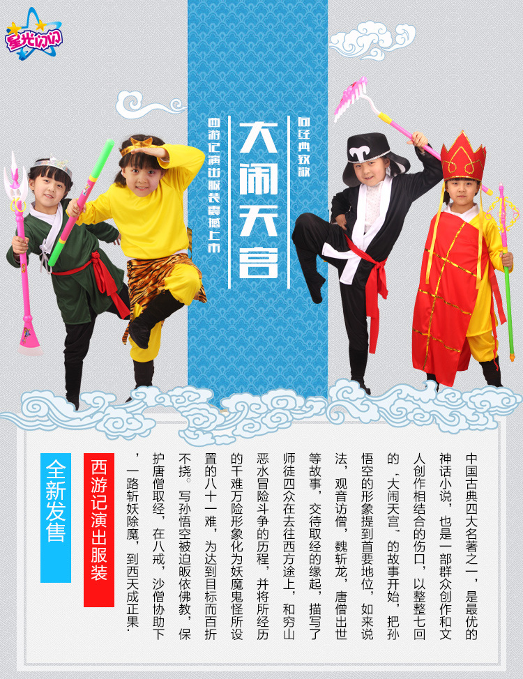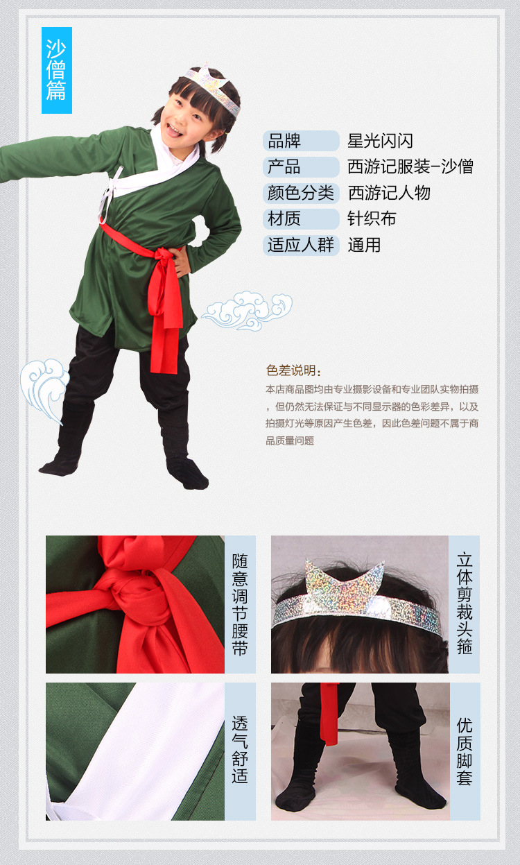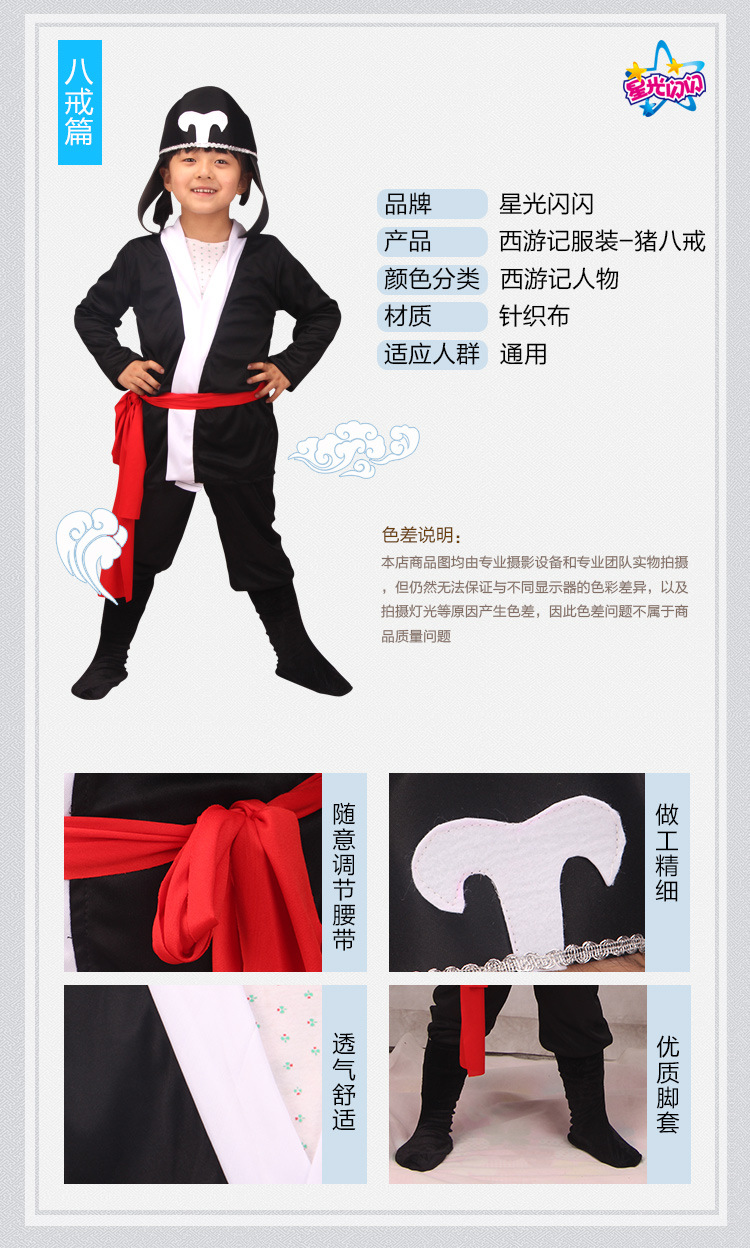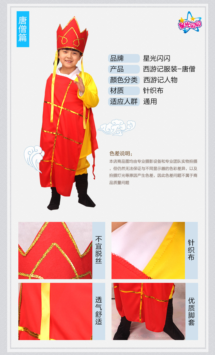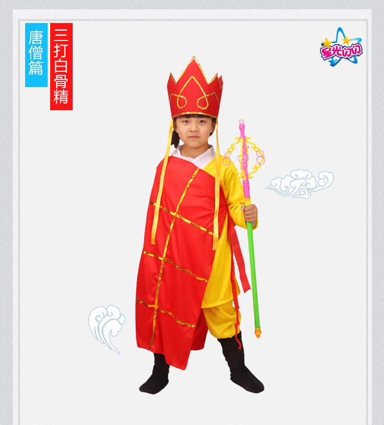 跨境新款儿童西游记服装唐僧演出服孙悟空猪八戒沙僧幼儿园表演服