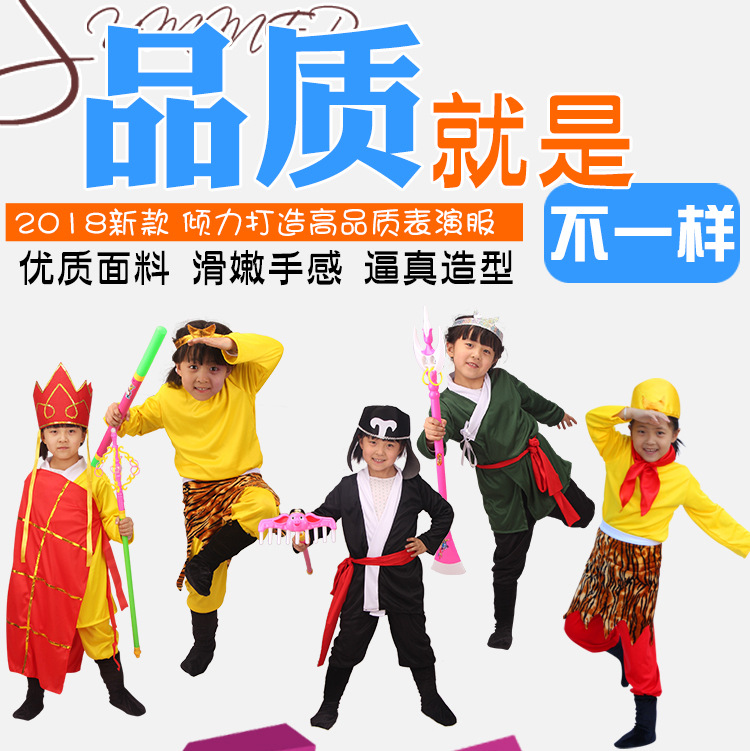 국경을 넘나 드는 새로운 아이들의 서쪽 여행 의상 탕 셍 공연 의상 Sun Wukong Pig Bajie Friar Sand 유치원 공연 의상
