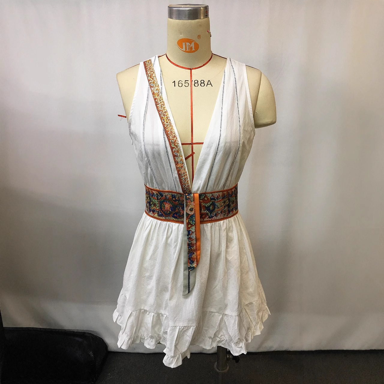 2025 국경 간 대외 무역 브이넥 스트랩 민소매 조끼 섹시한 프린트 빅 스윙 드레스 짧은 스커트