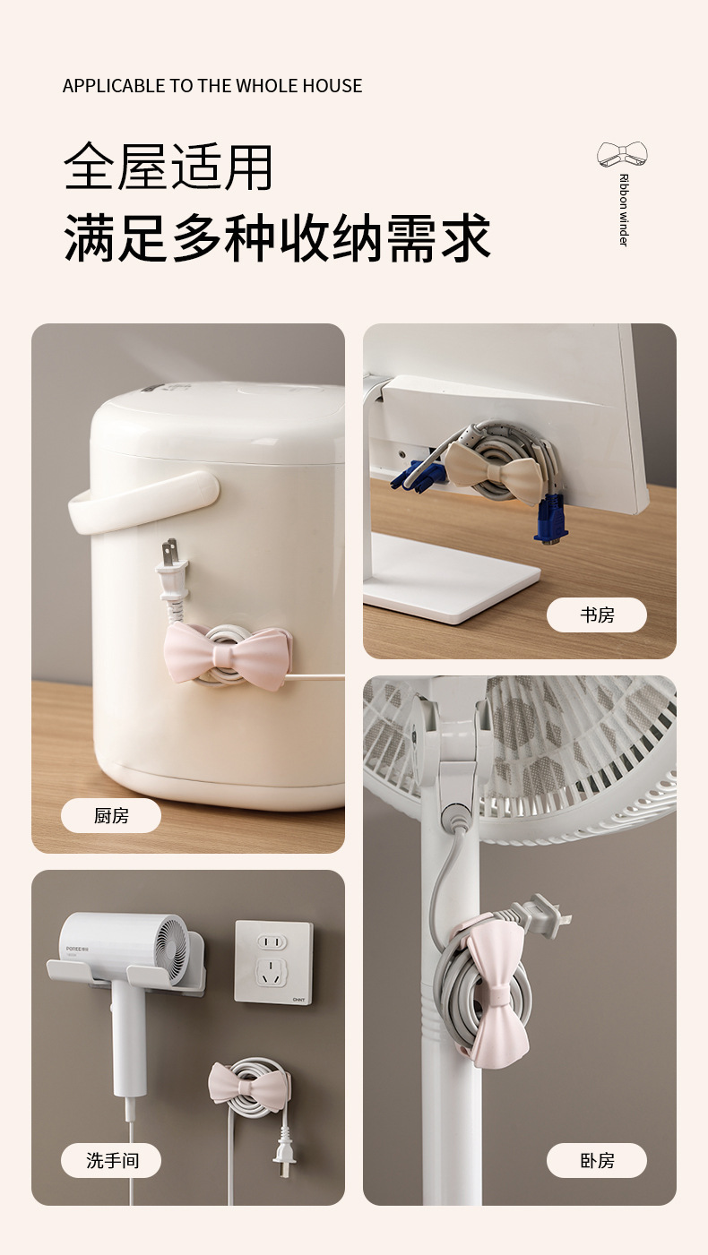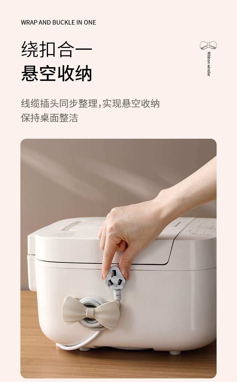 FaSoLa Bow Wire Winder 가전제품 케이블 관리 클립 주방 전원 코드 정리 및 보관 플러그 홀더