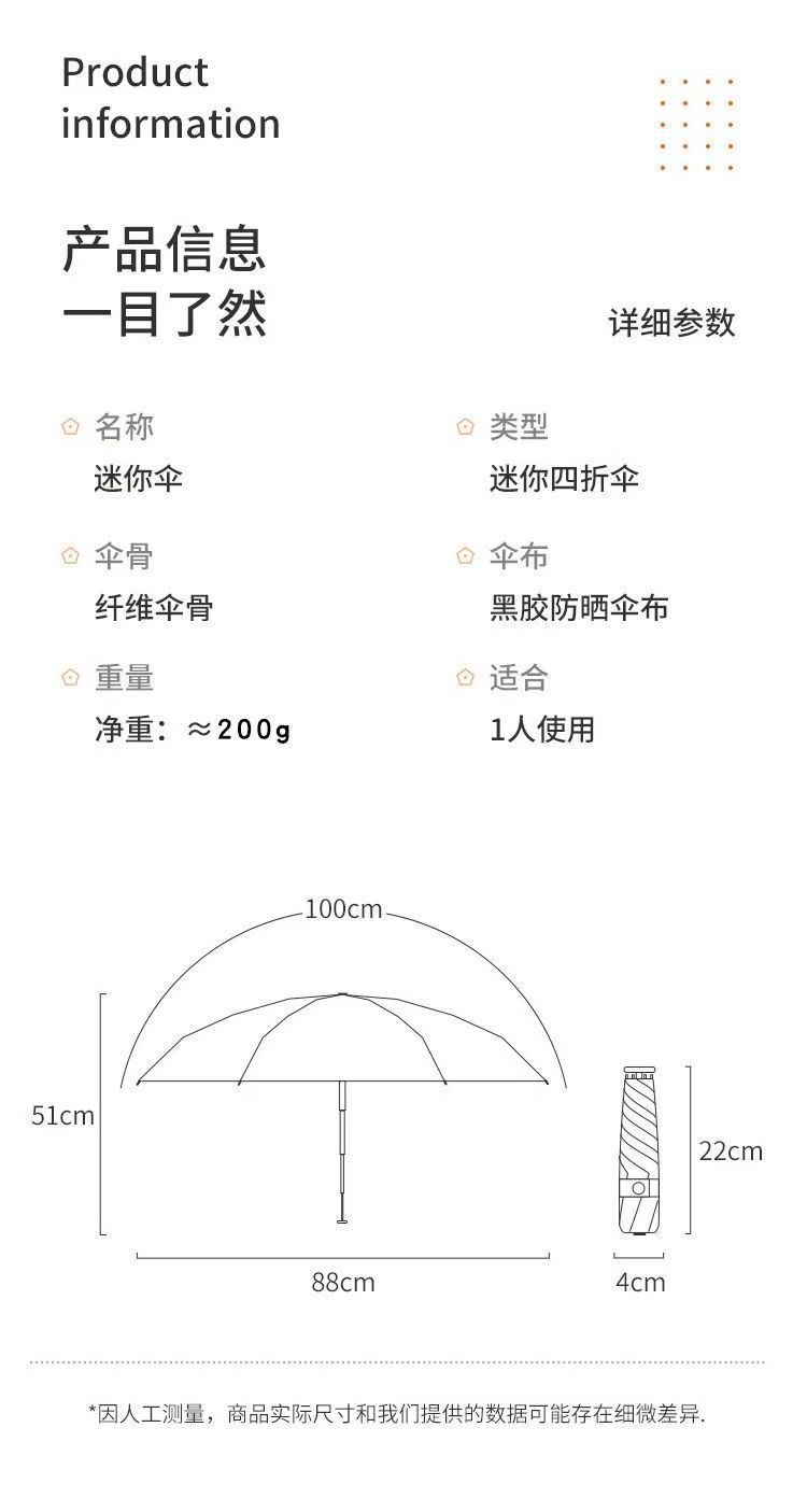 울트라 라이트 연필 우산 미니 수동 휴대용 접이식 써니 우산 블랙 접착제 안티-UV 간단한 여성 태양 우산