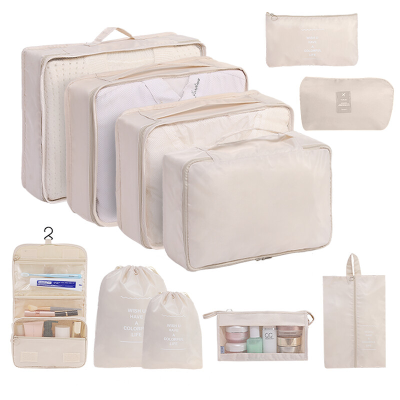 • 베이지색●더블 드로스트링 포켓 8종 세트●대용량