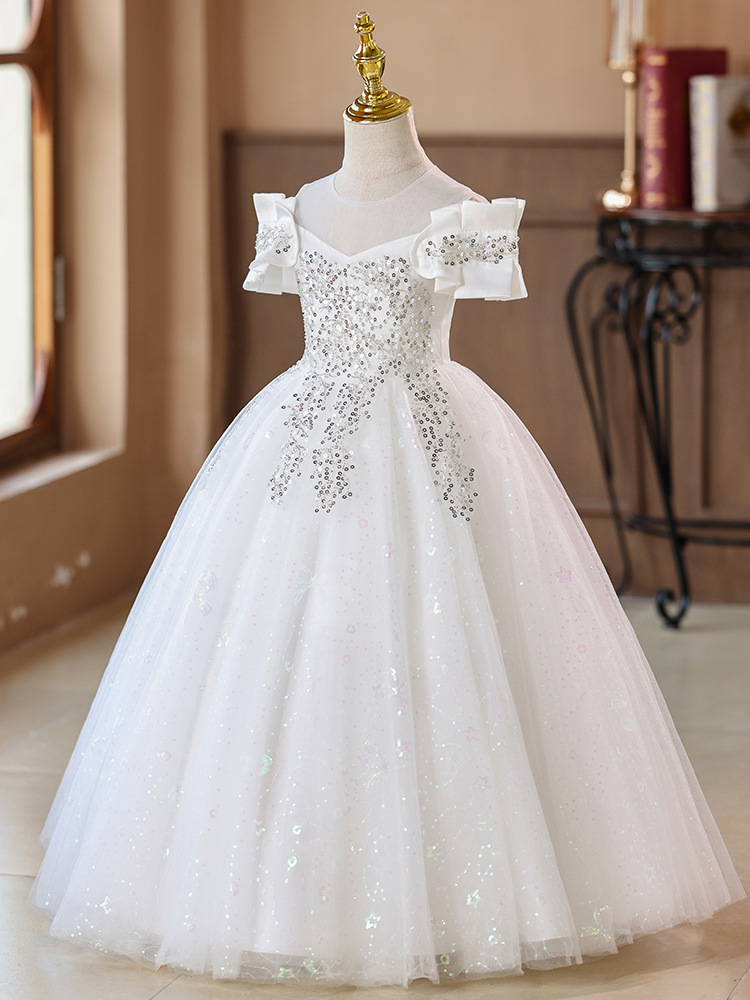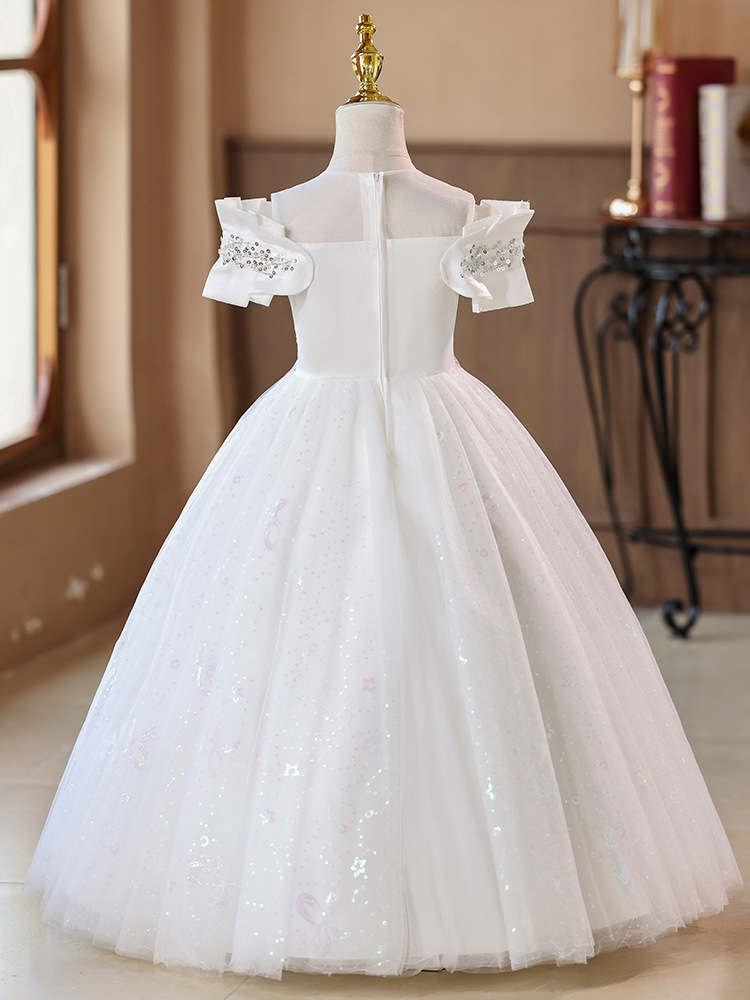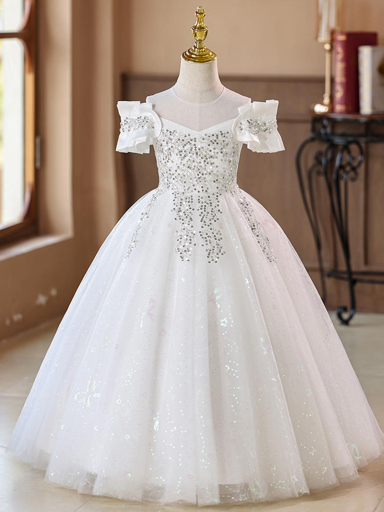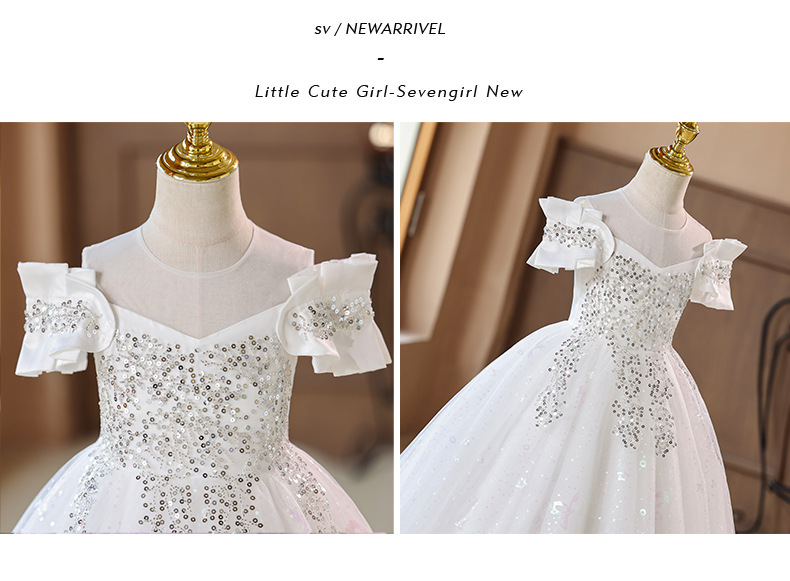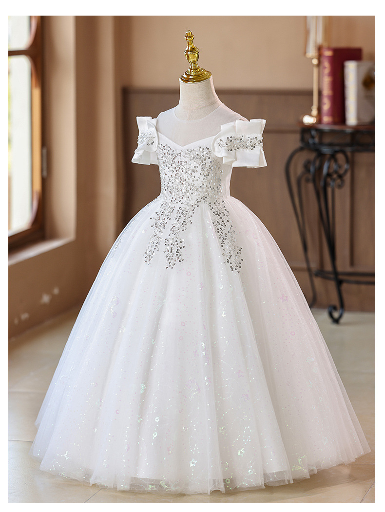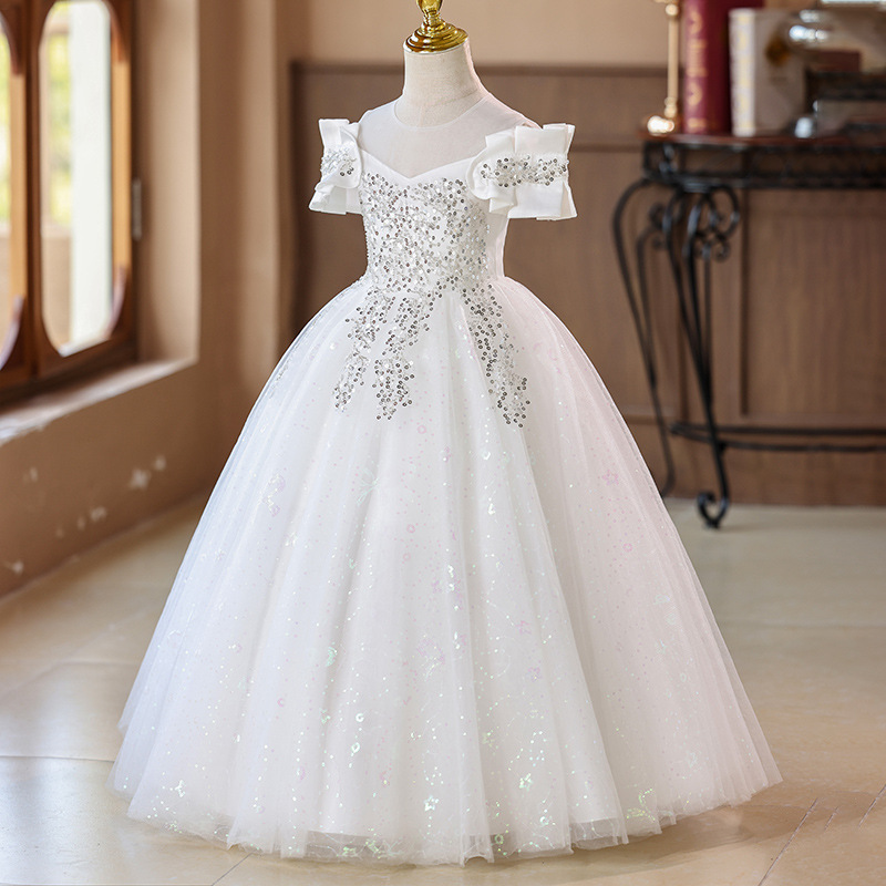 국경 간 폭발 소녀 스커트 폰스 스커트 베일 스커트 어린이 원피스 피아노 공연 원피스 공주 원피스 화이트