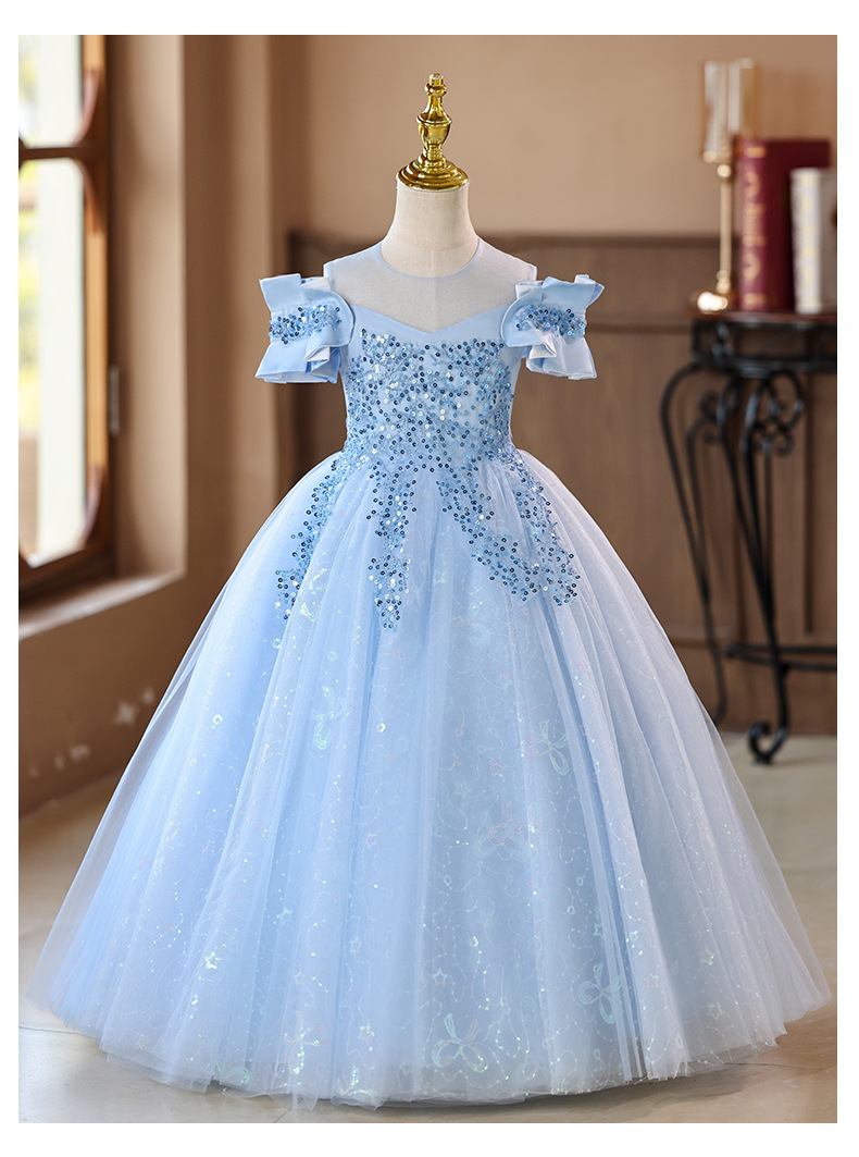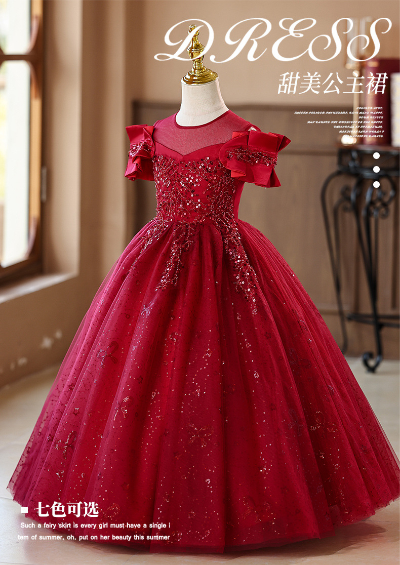 국경 간 폭발 소녀 스커트 폰스 스커트 베일 스커트 어린이 원피스 피아노 공연 원피스 공주 원피스 화이트스토어 가기