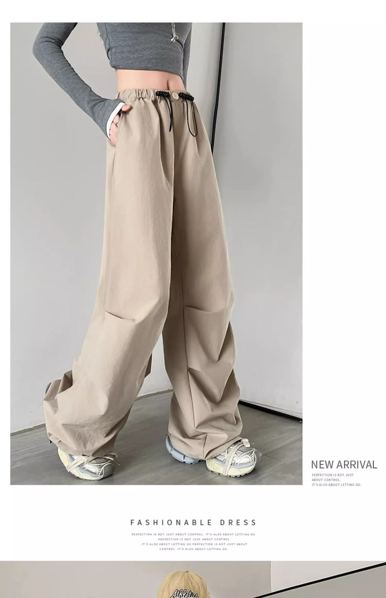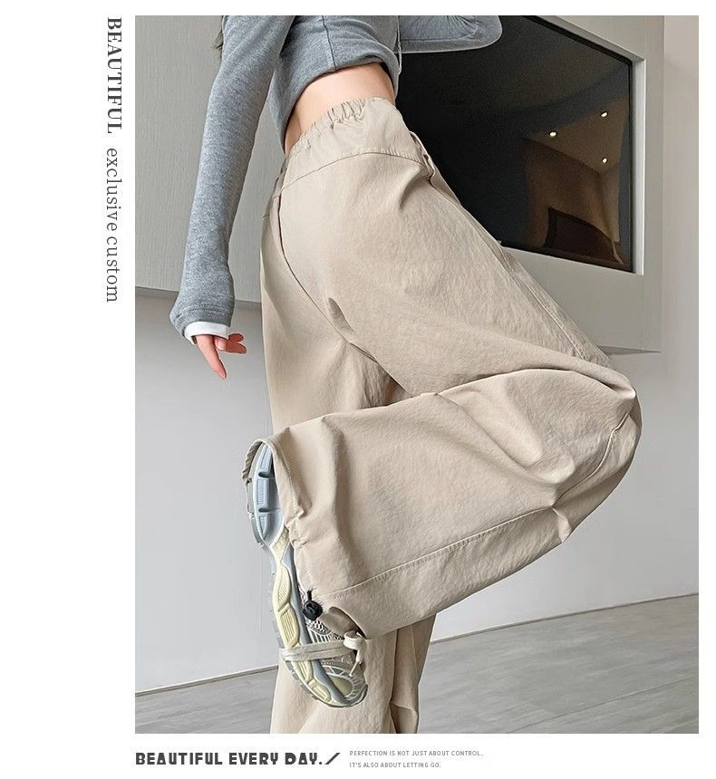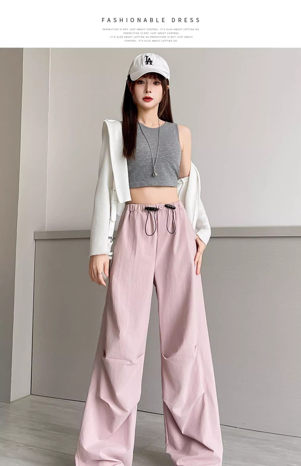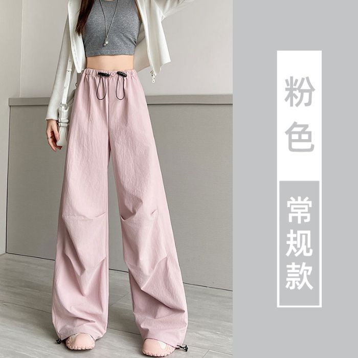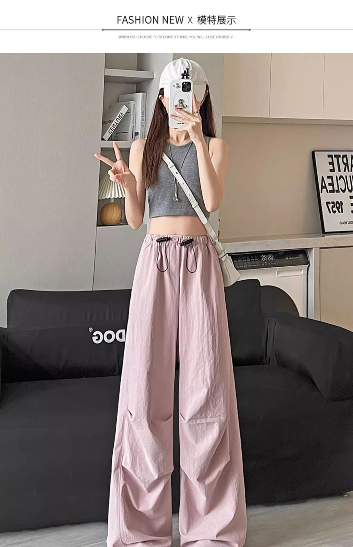 여성용 핑크 작업복 봄 여름 2025 새로운 한국 스타일 하이 웨이스트 슬리밍 야외 등산 느슨한 속건 스포츠 바지