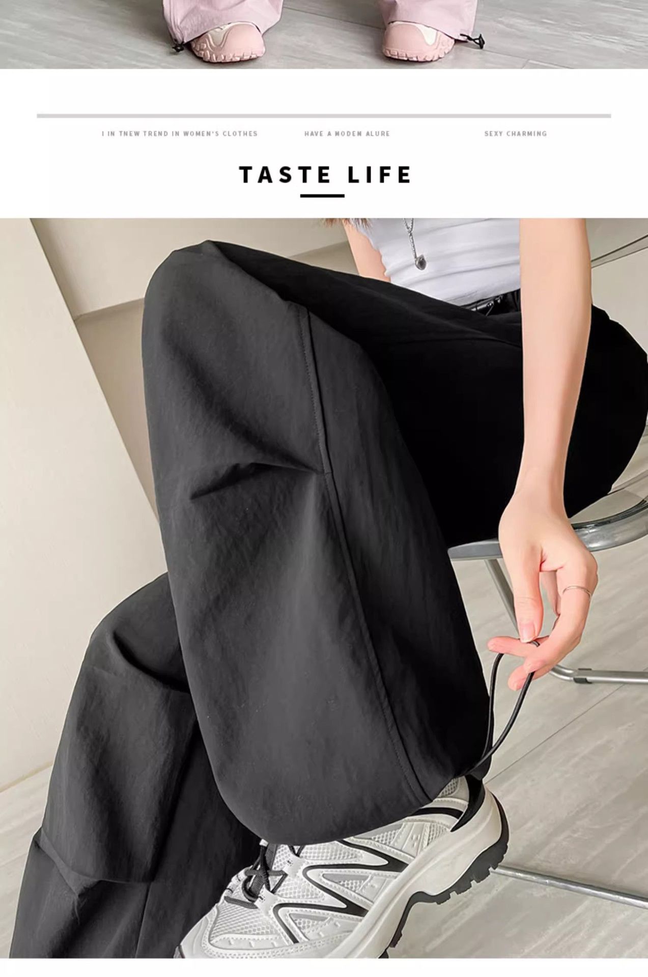 여성용 핑크 작업복 봄 여름 2025 새로운 한국 스타일 하이 웨이스트 슬리밍 야외 등산 느슨한 속건 스포츠 바지스토어 가기
