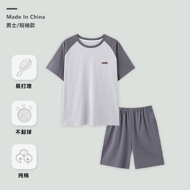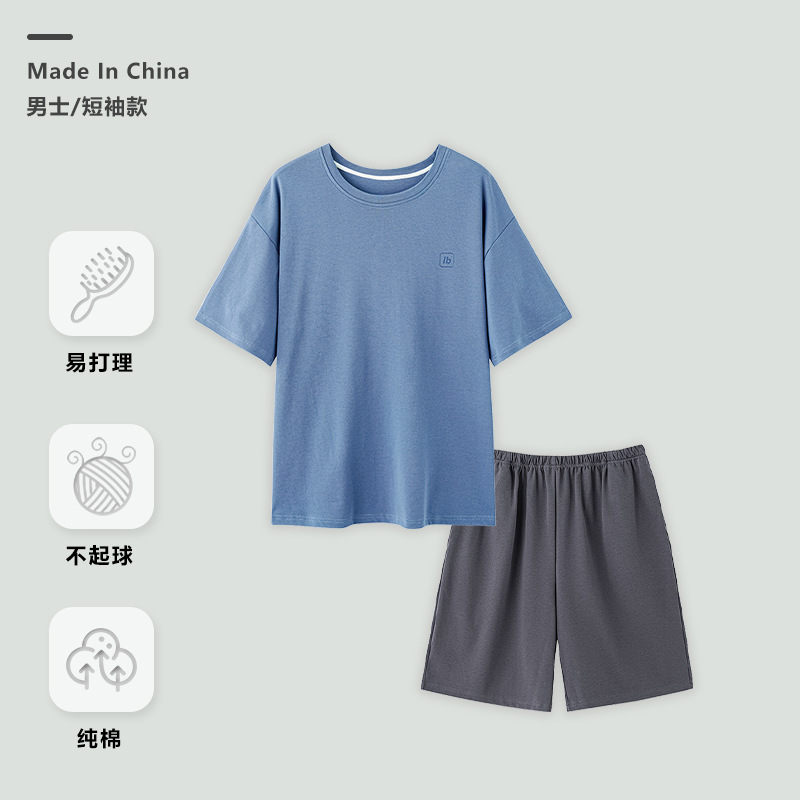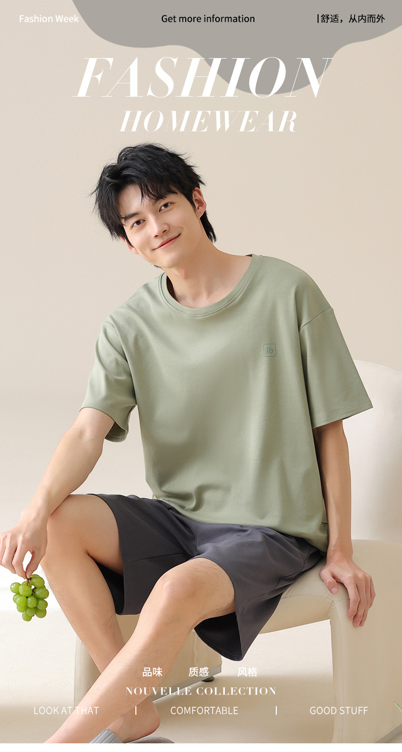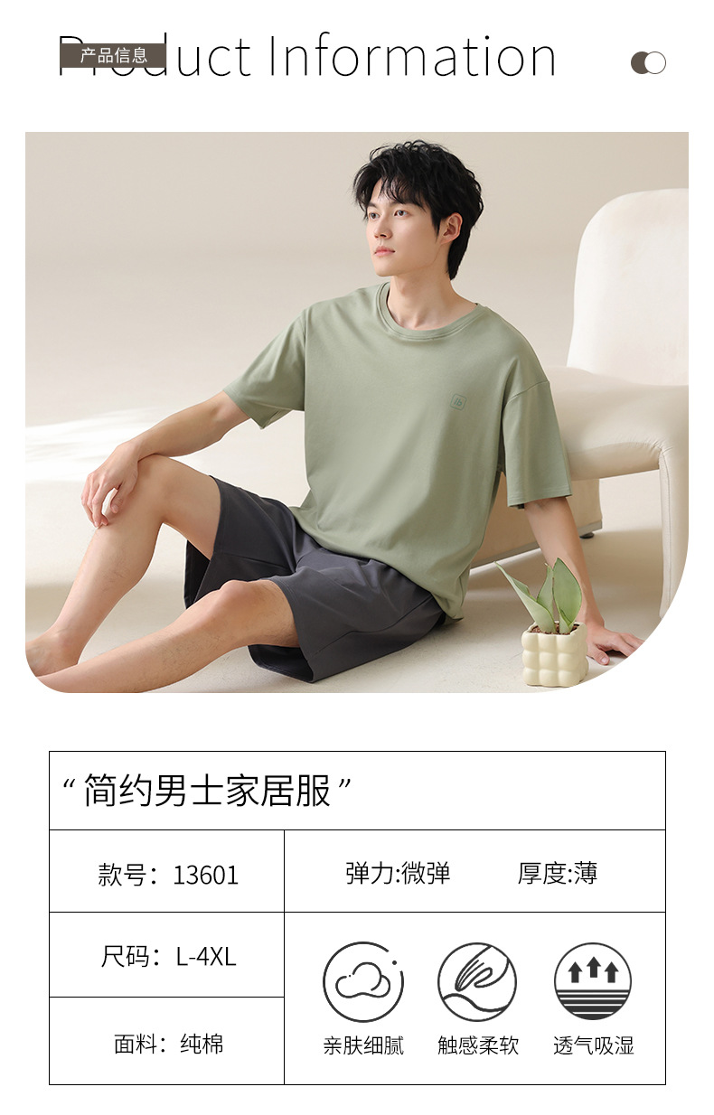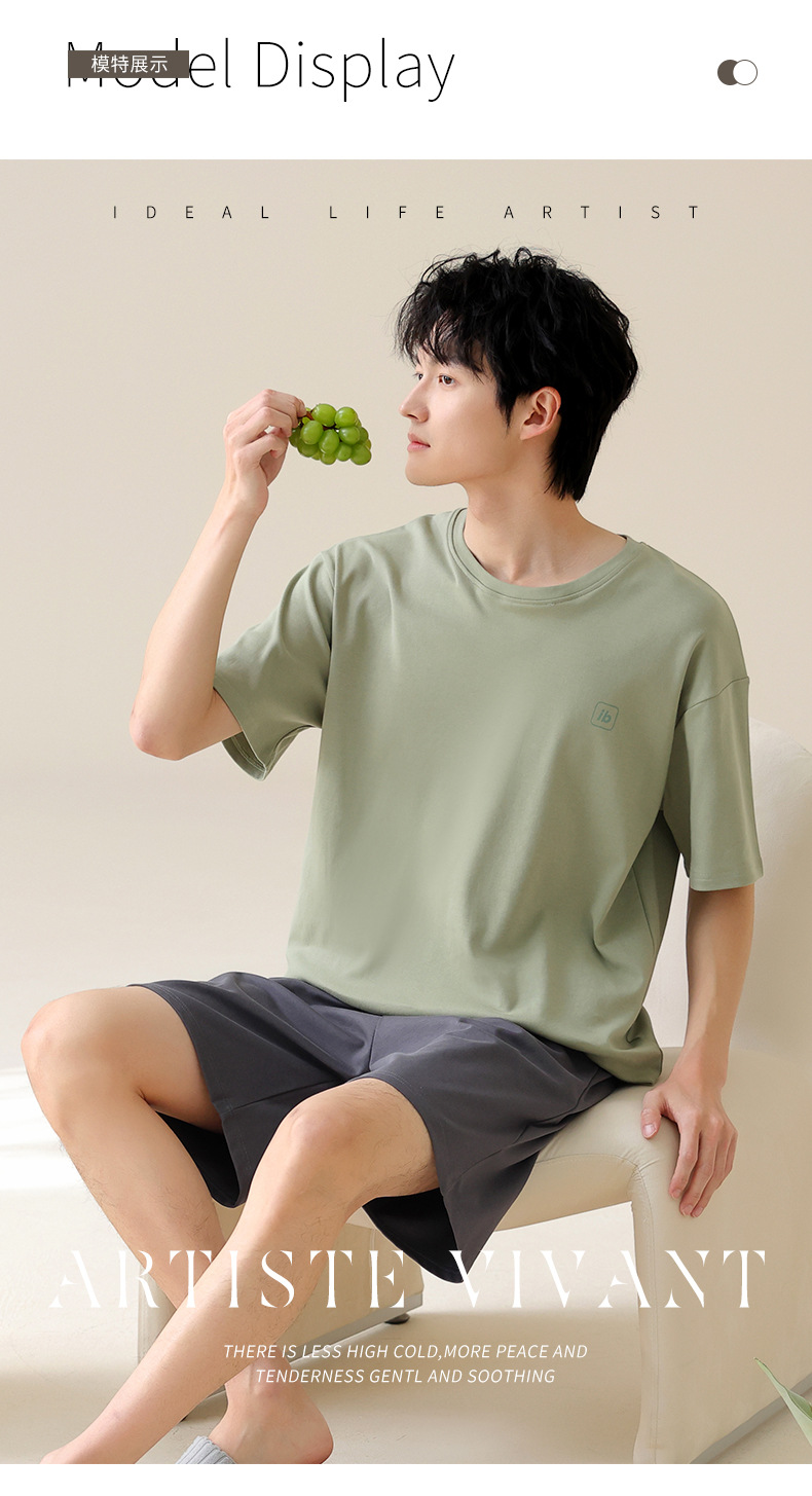 순면 잠옷 남성용 얇은 여름 쿨 반팔 기본 홈 의류 플러스 사이즈 반바지 국경 아마존스토어 가기