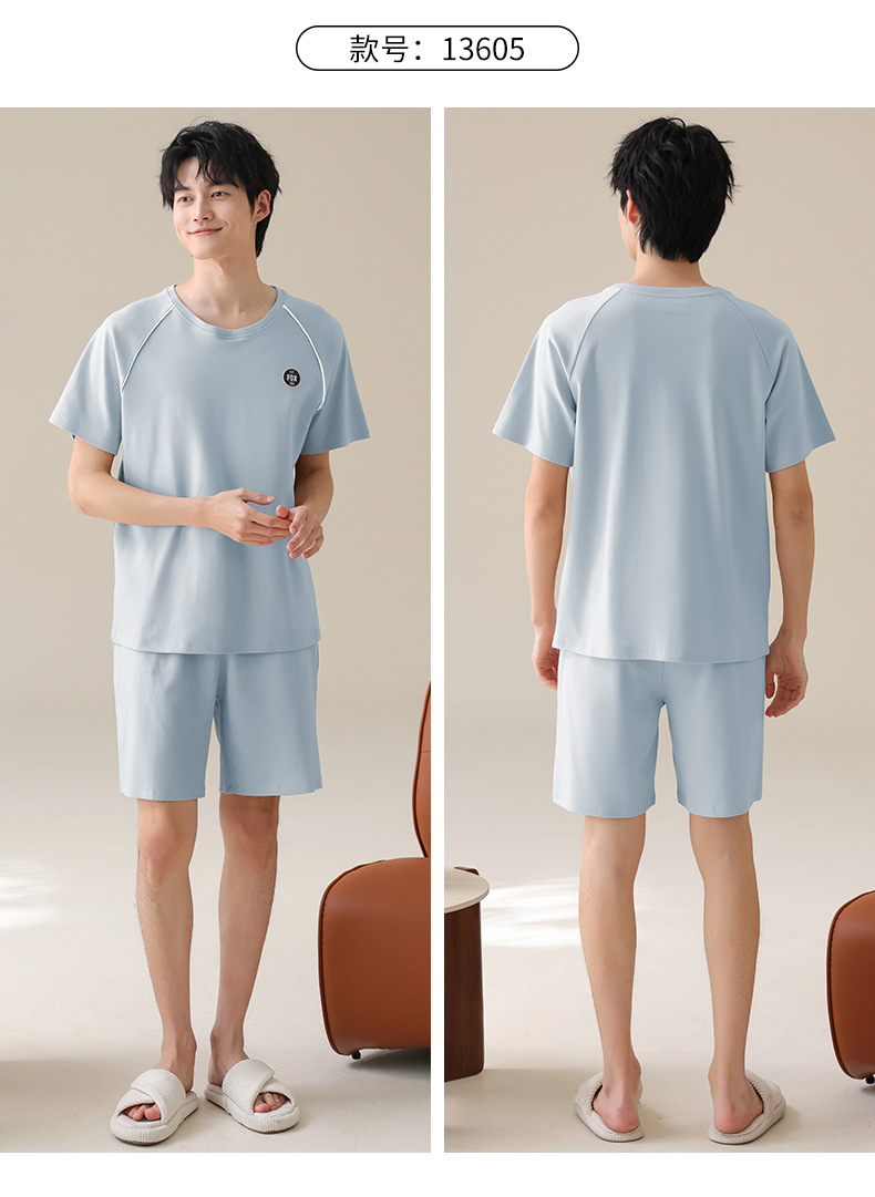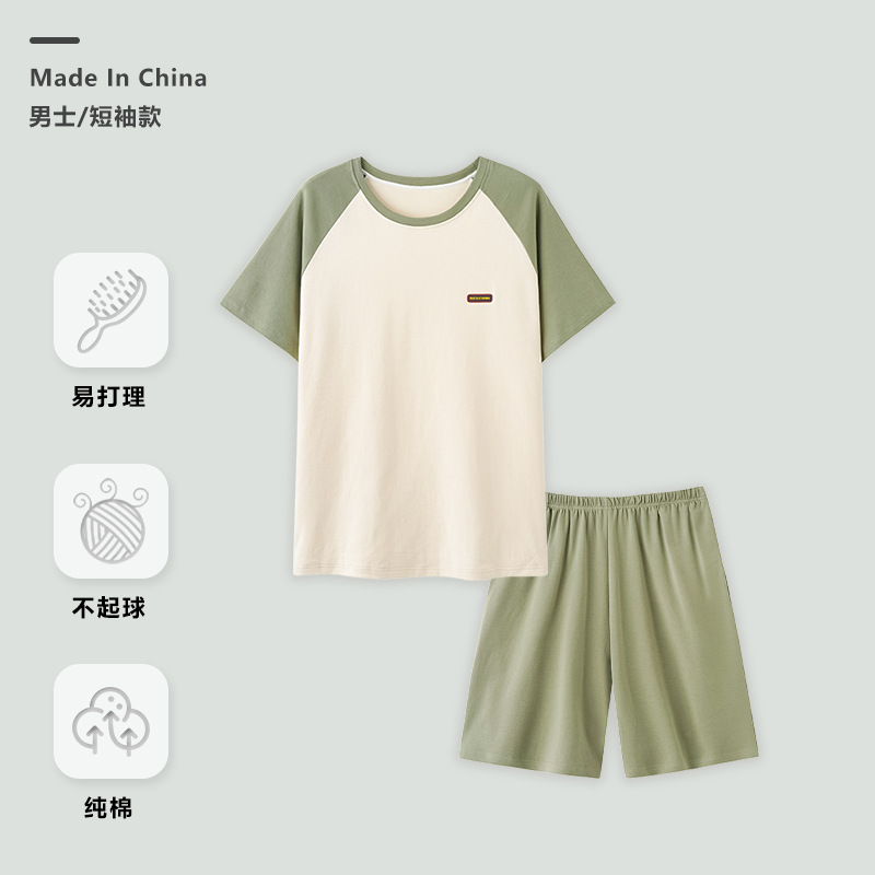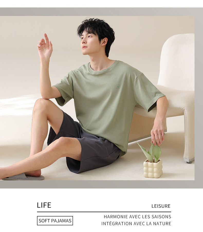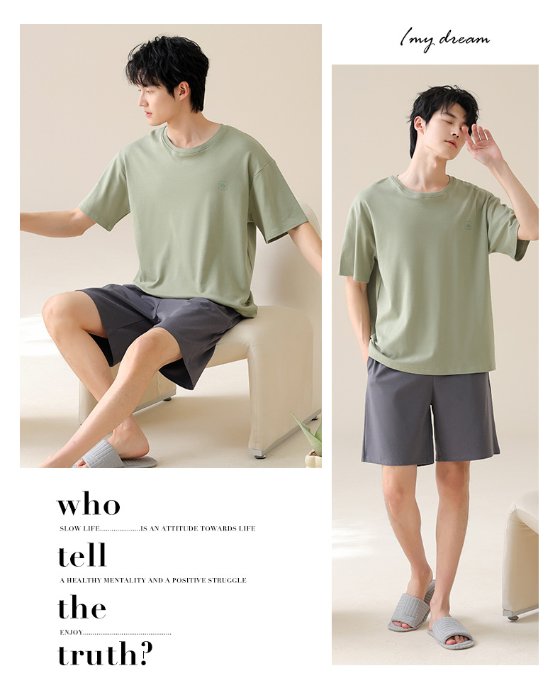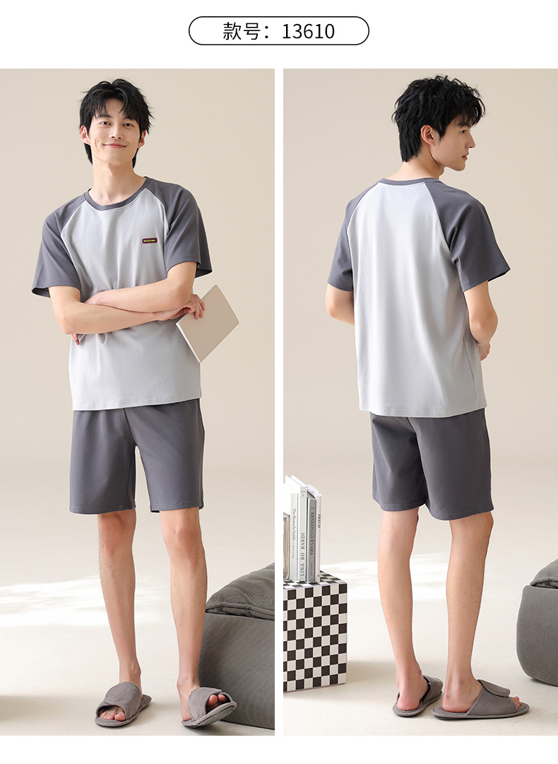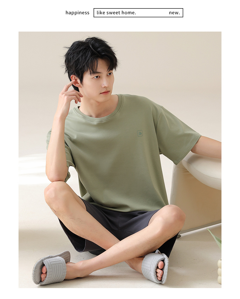 순면 잠옷 남성용 얇은 여름 쿨 반팔 기본 홈 의류 플러스 사이즈 반바지 국경 아마존스토어 가기