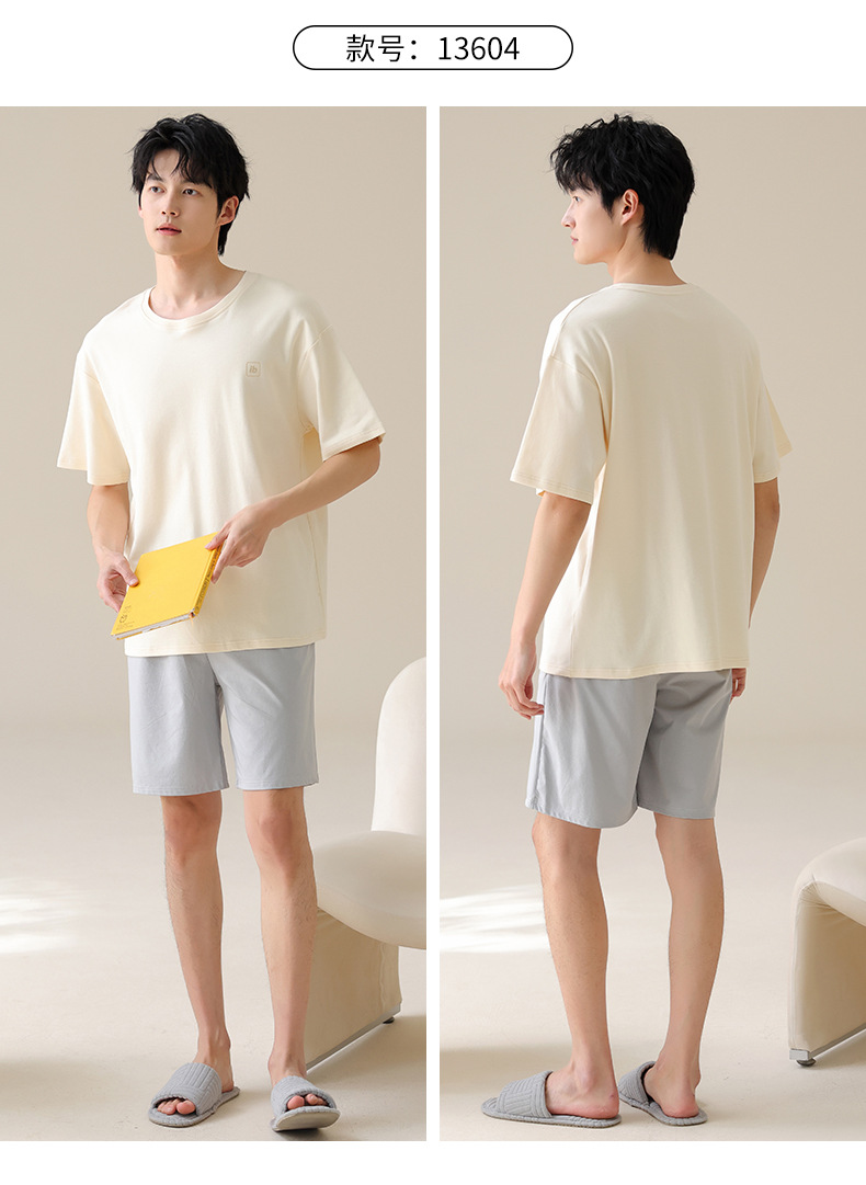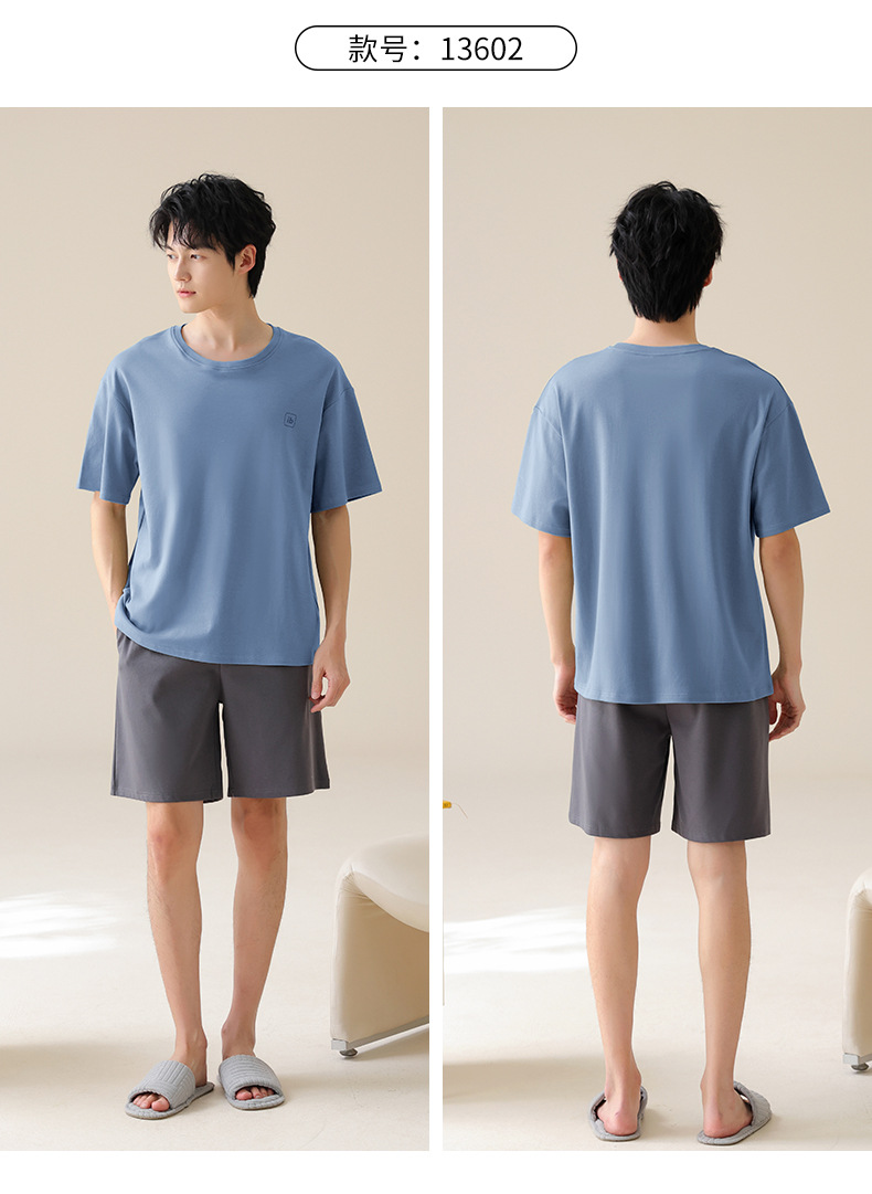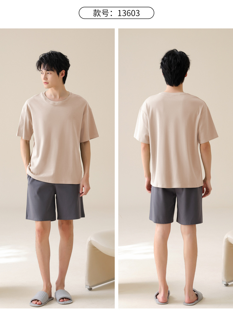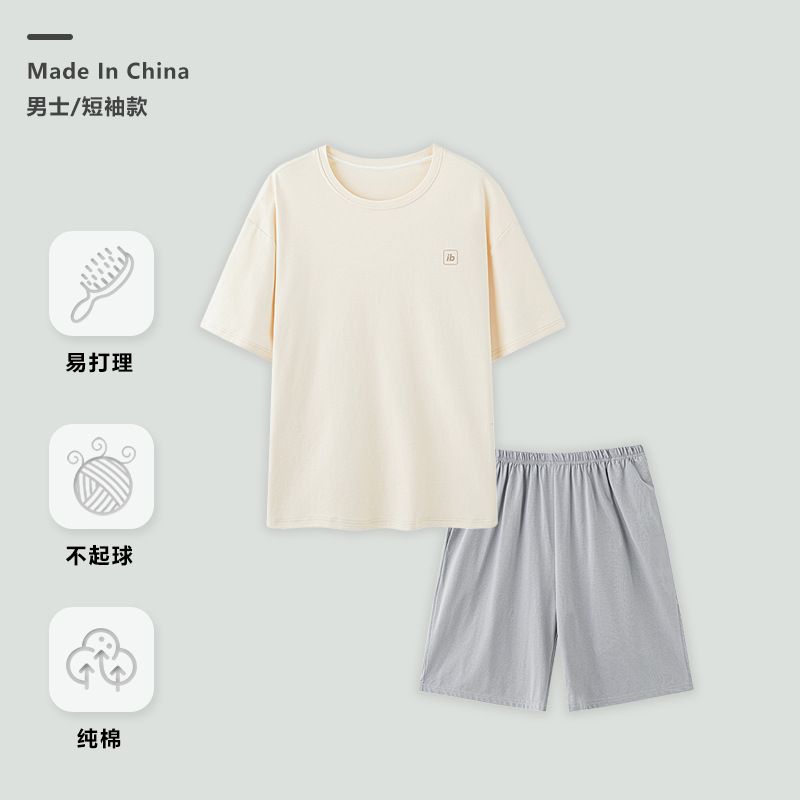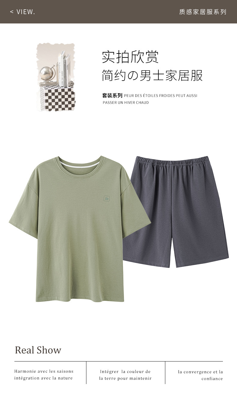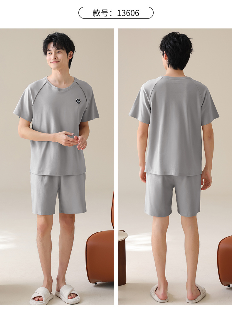 순면 잠옷 남성용 얇은 여름 쿨 반팔 기본 홈 의류 플러스 사이즈 반바지 국경 아마존스토어 가기