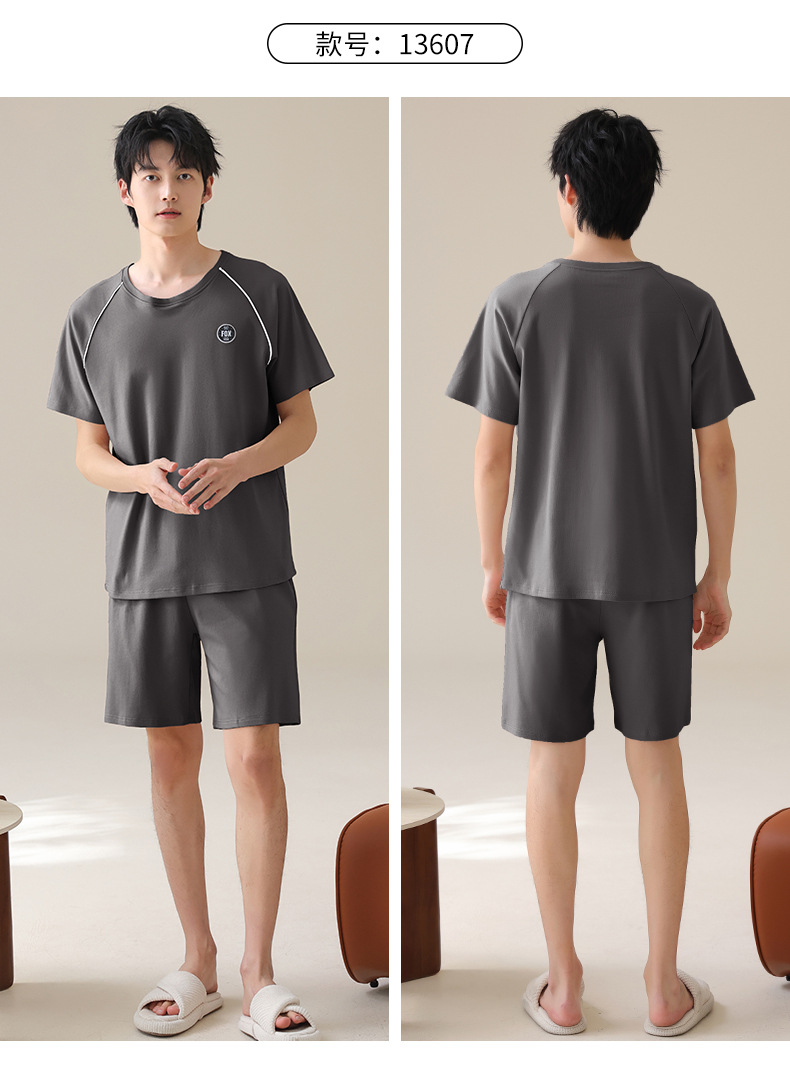 순면 잠옷 남성용 얇은 여름 쿨 반팔 기본 홈 의류 플러스 사이즈 반바지 국경 아마존