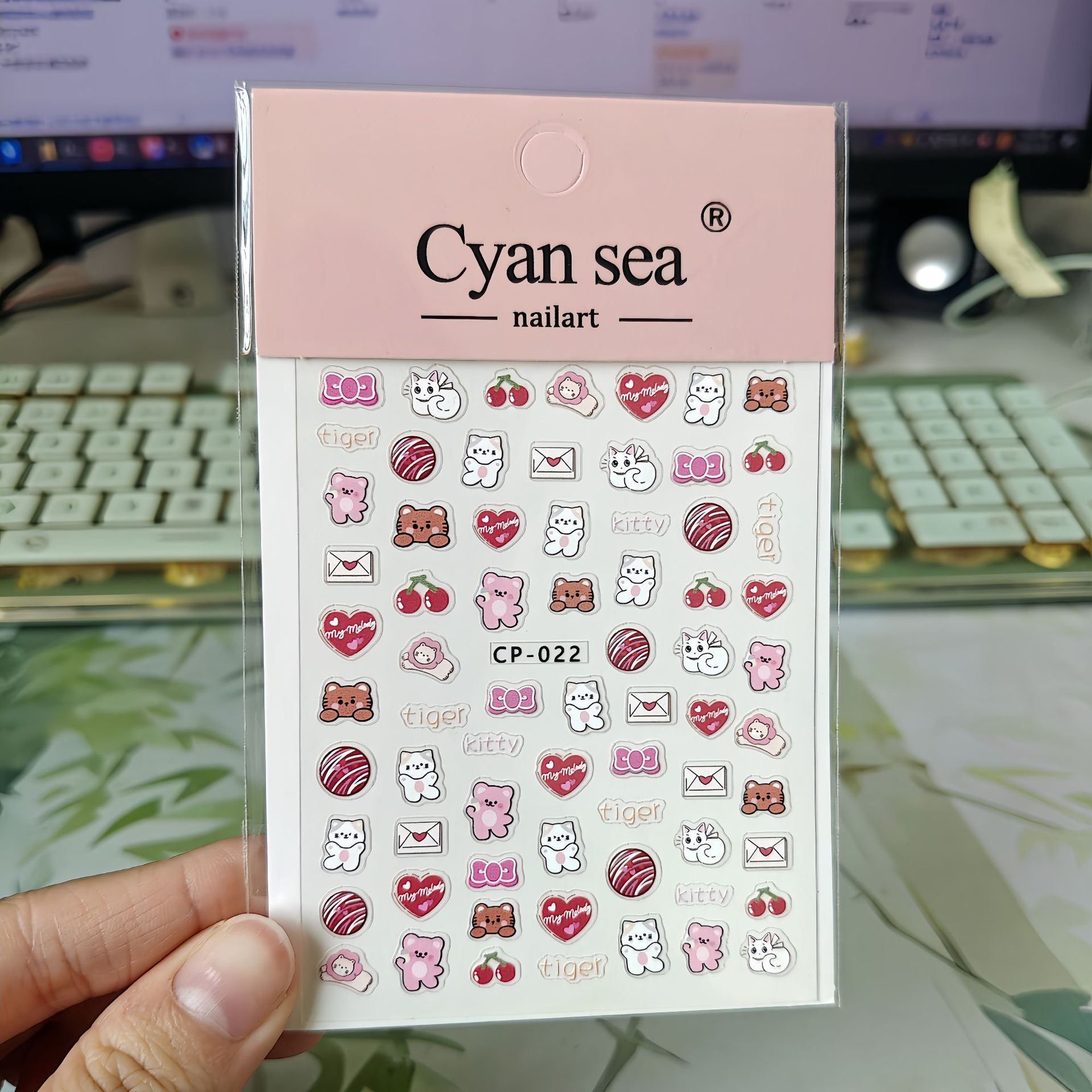 3 차원 스티커 일본 만화 양각 3 차원 스티커 만화 곰 벚꽃 메이크업 스티커 네일 아트 액세서리 diy