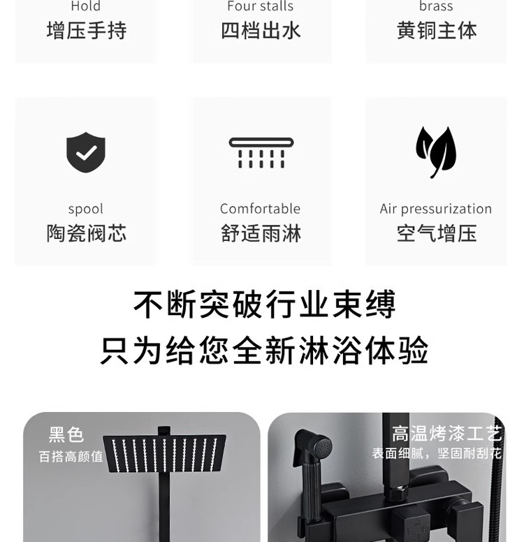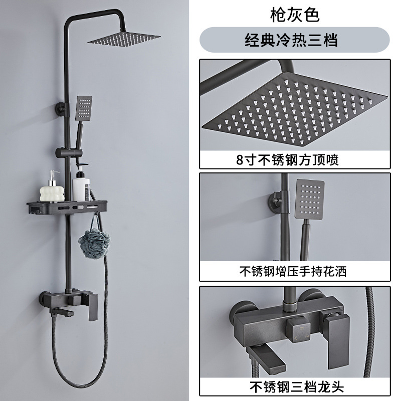 외국 무역 샤워 시스템 세트, 완전한 샤워기 세트, 사각형 샤워헤드, 숨겨진 설치형, 고압 분사 노즐, 욕실 샤워 세트