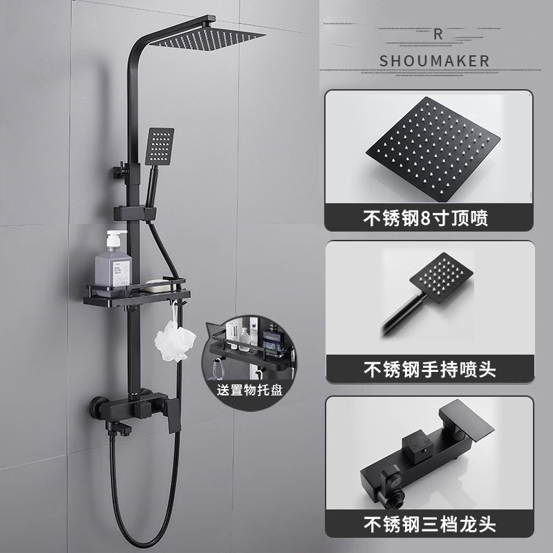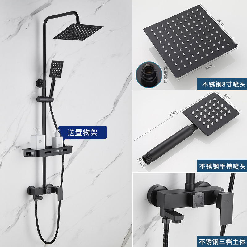 • 블랙 - 사각 3단 - (원형 튜브) + 선반 + ABS 가압 샤워 헤드