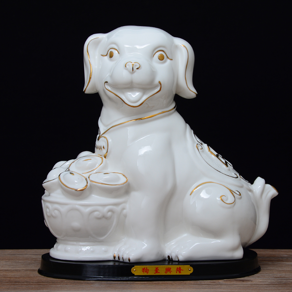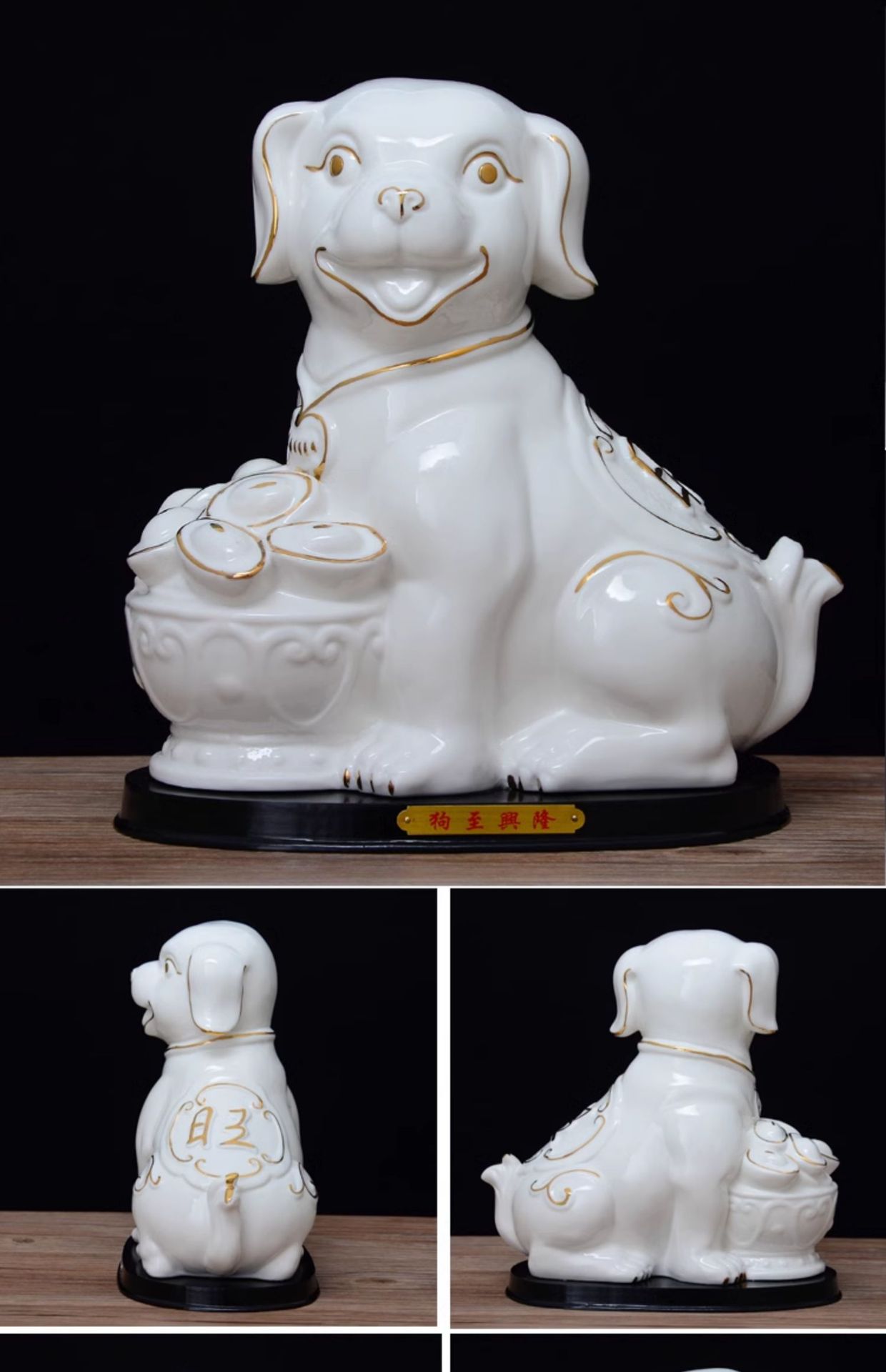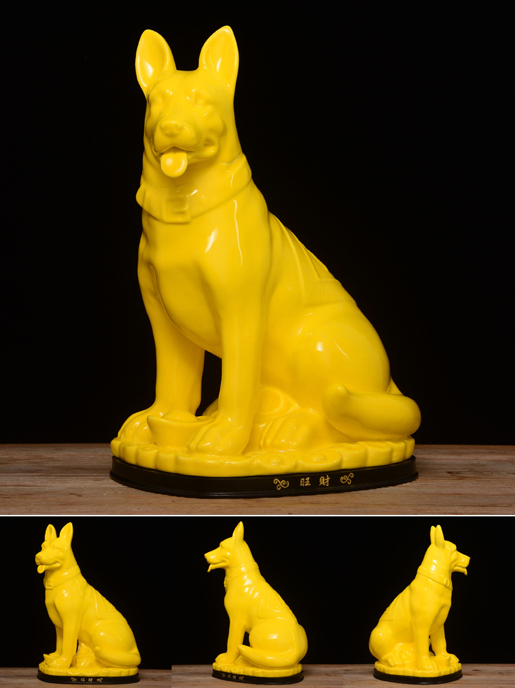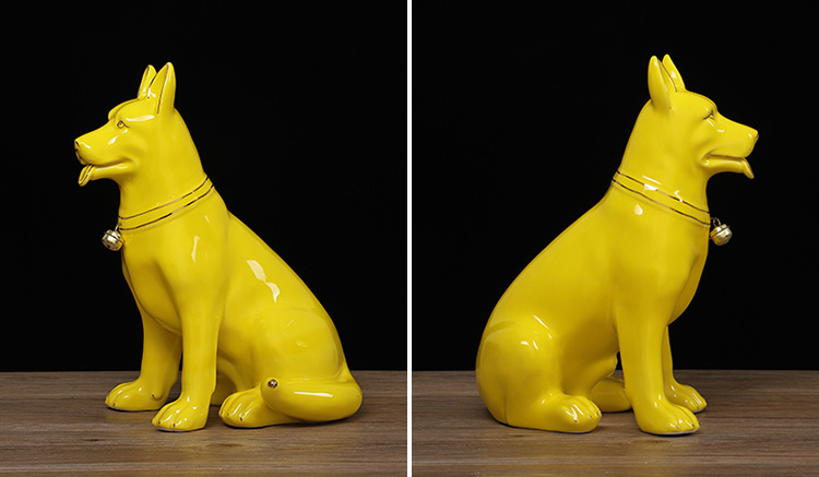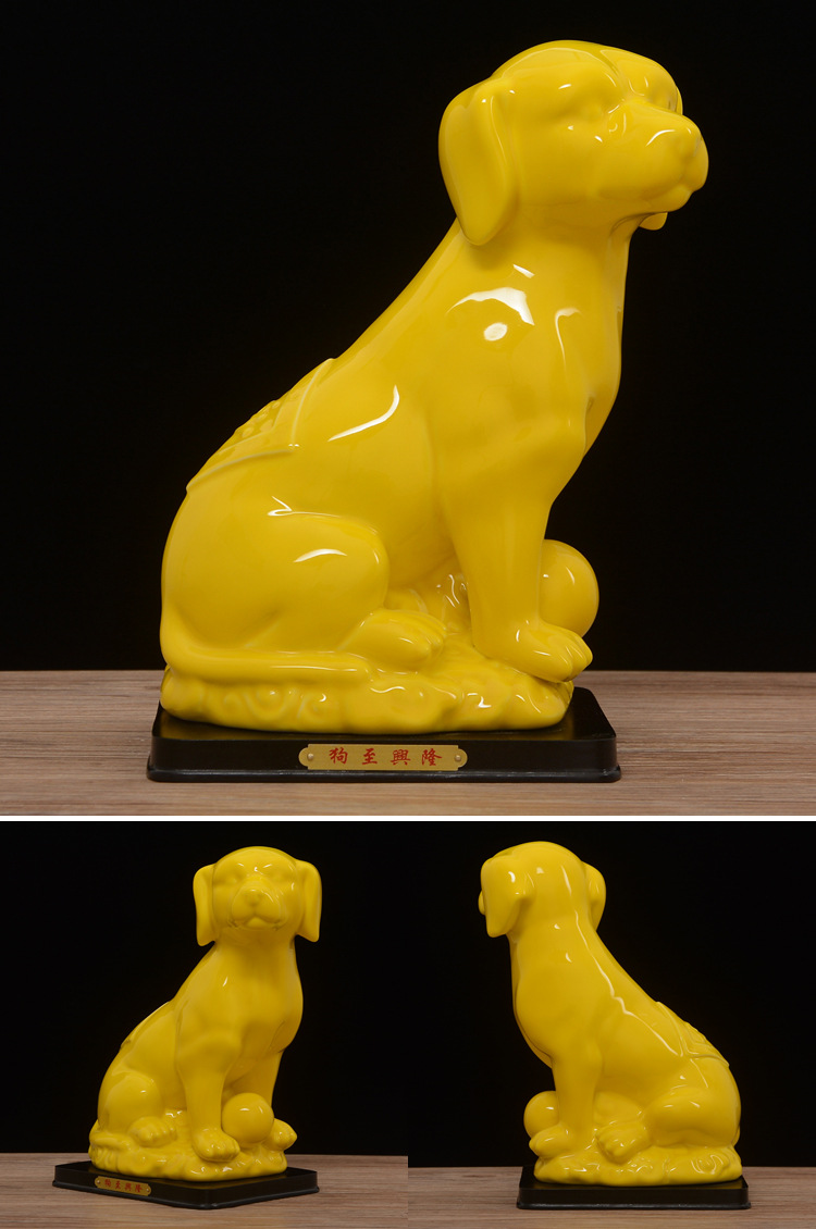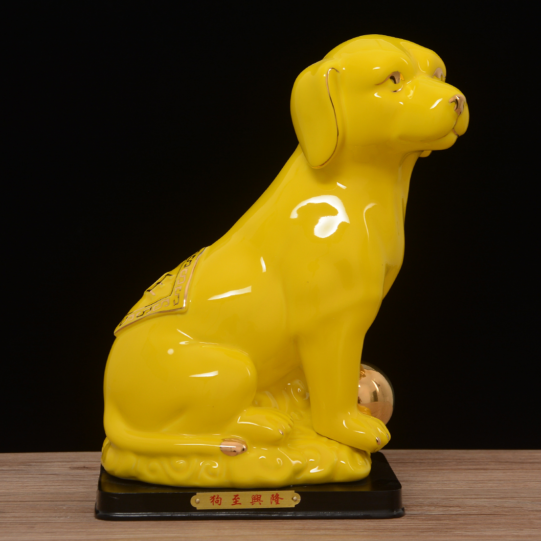 노란색 세라믹 개 장식품 12개의 조디악 개 풍수 집 노란색 개 홈 장식스토어 가기