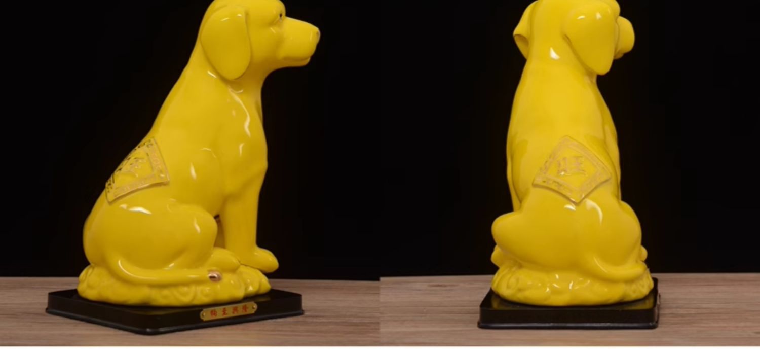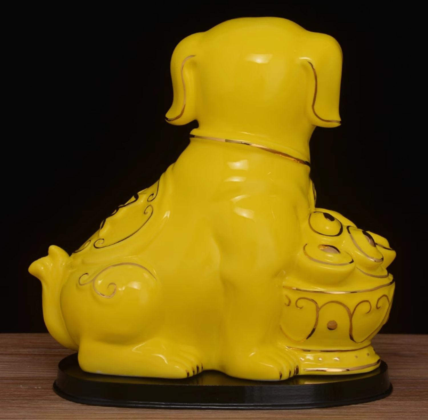 노란색 세라믹 개 장식품 12개의 조디악 개 풍수 집 노란색 개 홈 장식