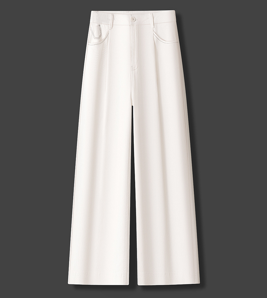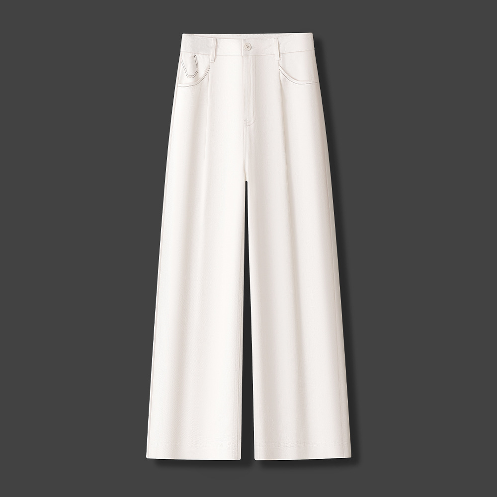아이보리 부드러운 데님 넓은 다리 바지 여성 2025 봄 새로운 빛 럭셔리 하이 엔드 슬리밍 작은 스트레이트 바지